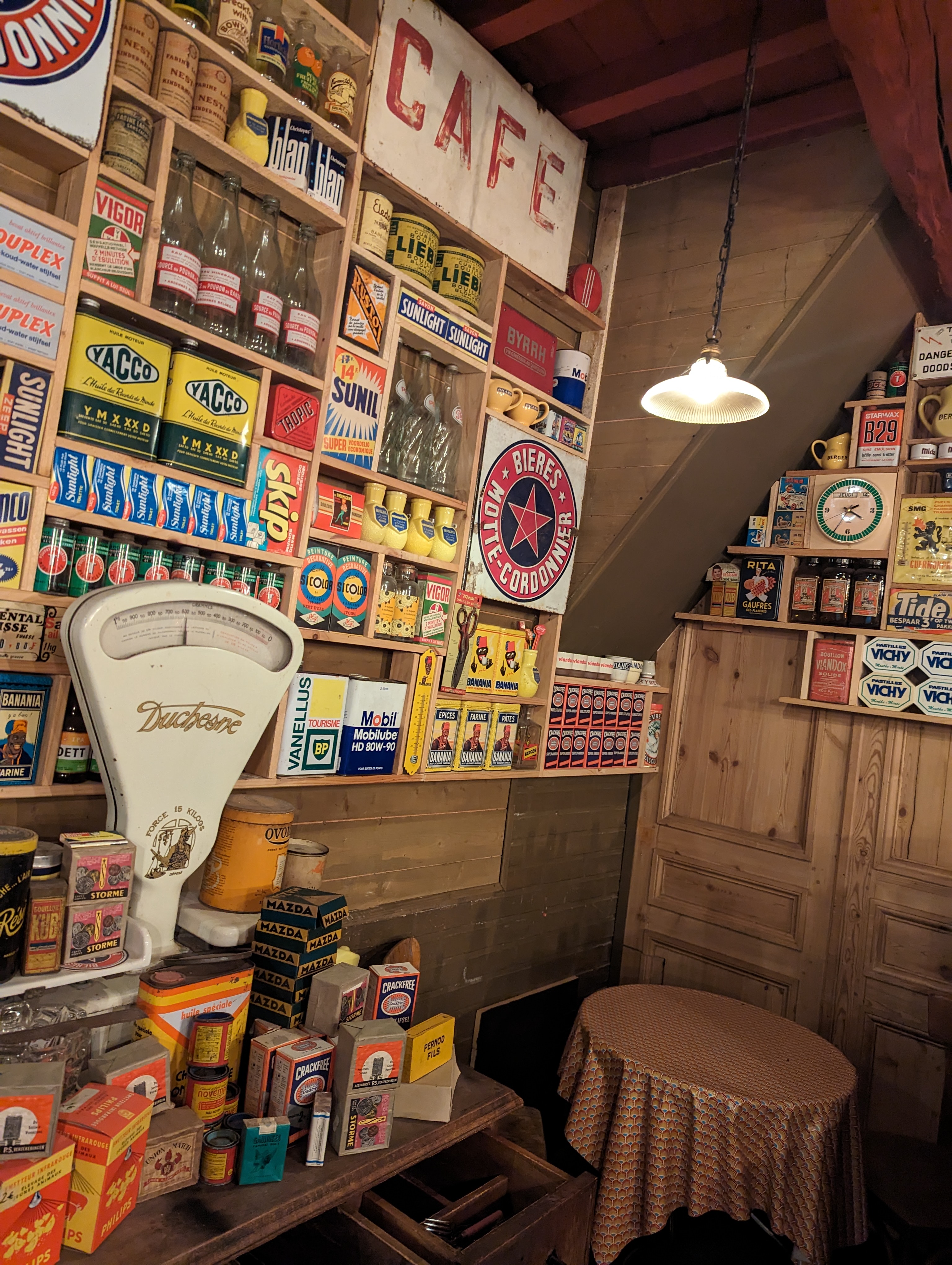 Atmosphère folklorique, typique du Nord ! Gastronomie traditionnelle. Toute la décoration peut être achetée. Un beau concept et une belle découverte.
