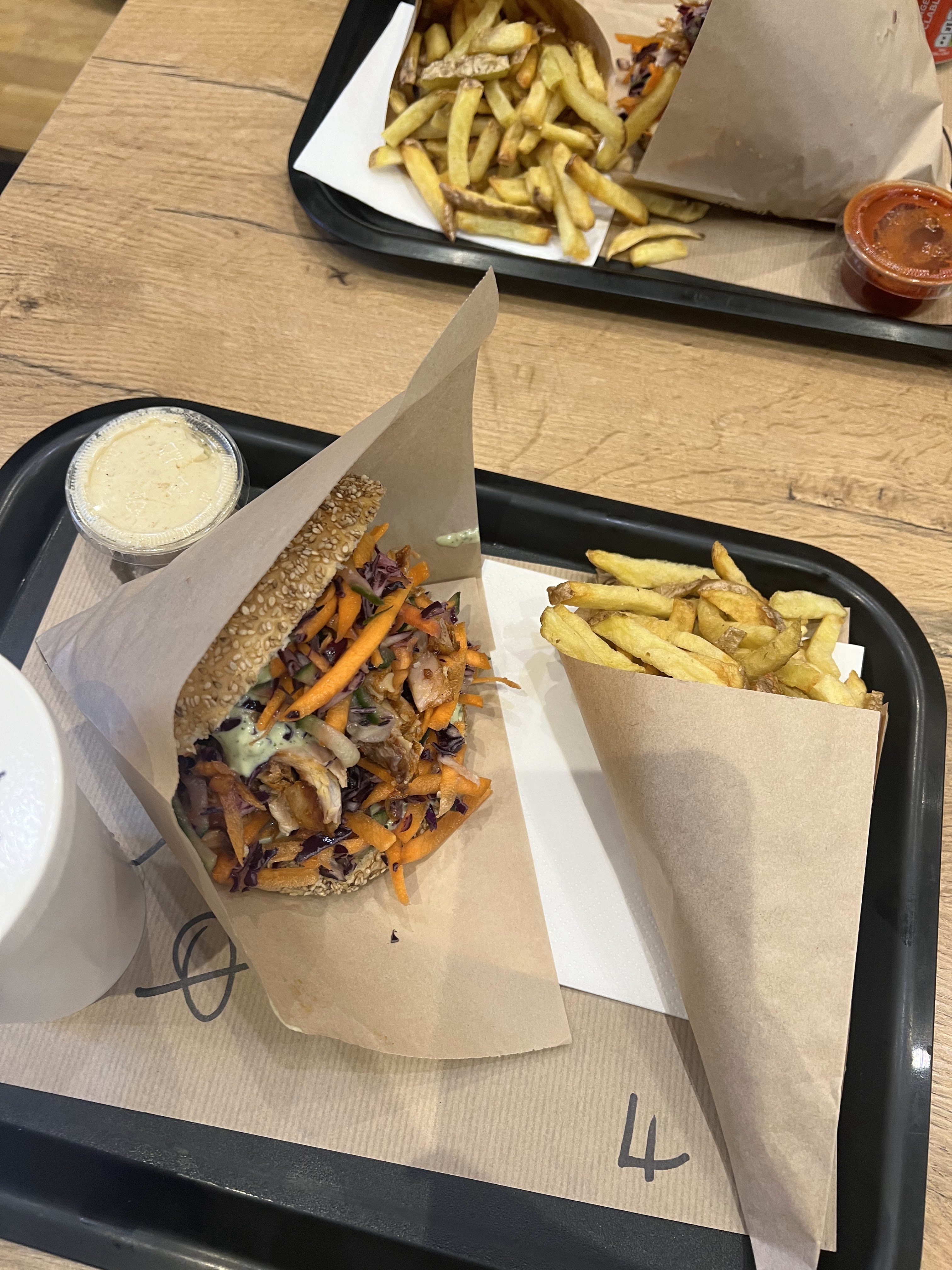 Décevant… Le concept du kebab gourmet fait maison avec de bons produits nous plaisait beaucoup (on en salivait d’avance!) mais ça a malheureusement été la douche froide… Les pains étaient si peu garnis que nous ne pouvons nous prononcer sur le goût de la viande et des légumes (néanmoins les sauces étaient délicieuses!), les frites (pour ne pas dire miettes de frites) extrêmement grasses avec un goût de vieille huile et nous n’avons pas pu goûter la citronnade et le thé glacé puisqu’ils n’ont pas été mis dans nos sacs… Bref vraiment déçus, dommage car « sur le papier » ça nous paraissait délicieux. Sommes-nous mal tombés ?