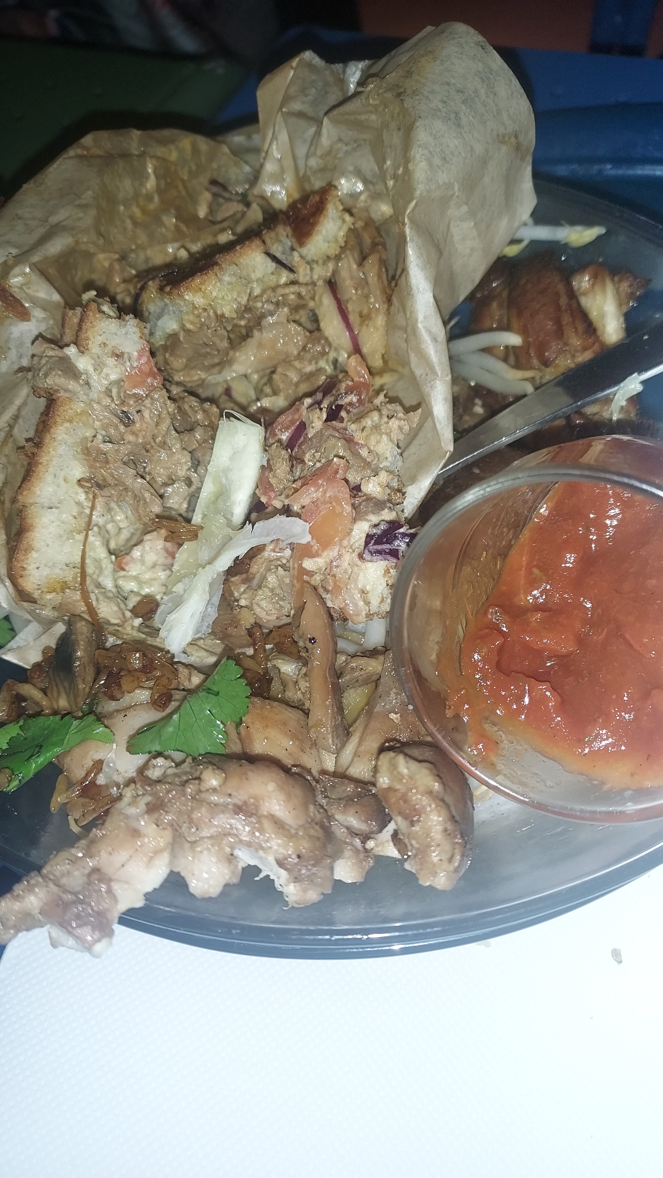 Viande froide, trop de condiments, le pain a un aspect pâteux en bouche. L'attente a été longue (15min pour 4 clients)