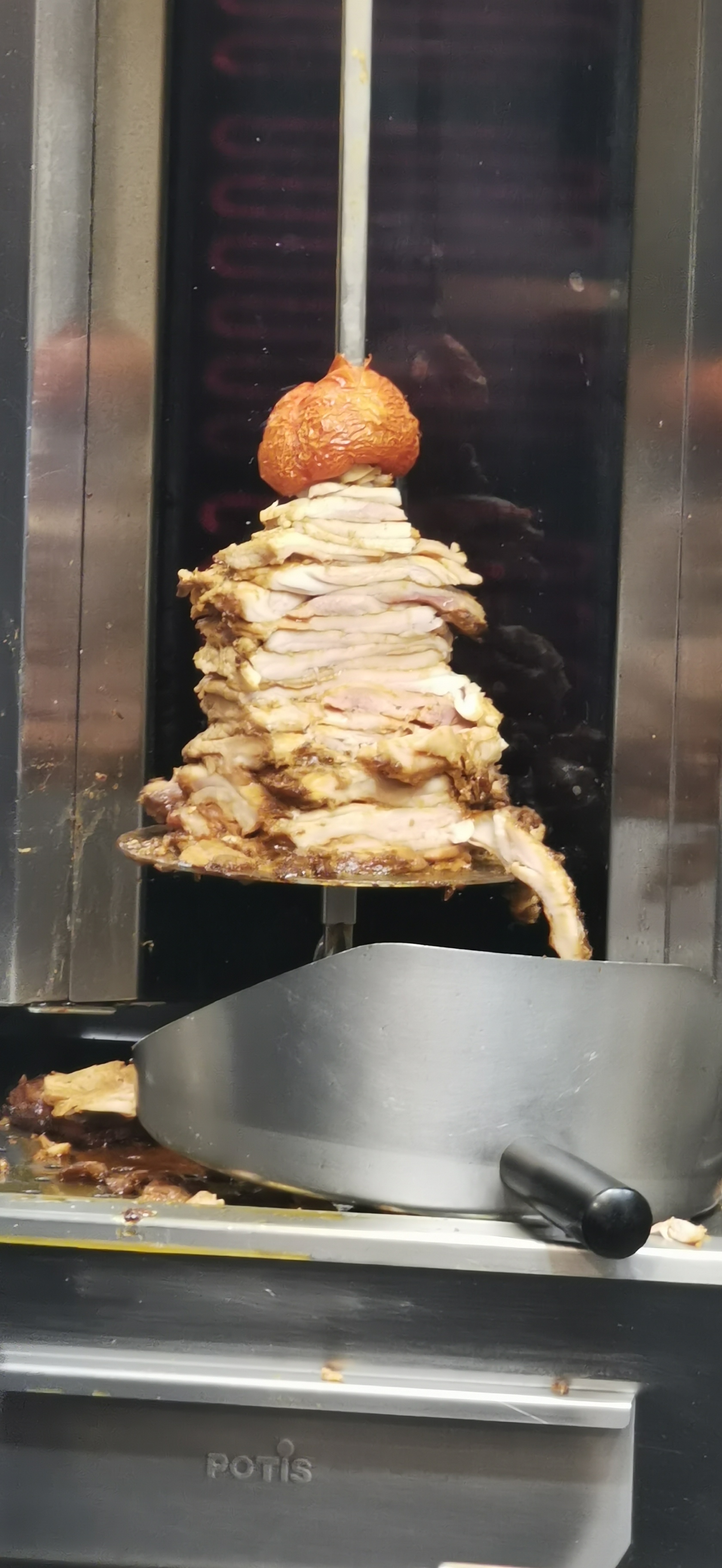 Viande dure car trop longtemps restée dans le bac et non fraîchement découpé sur la broche, service au minimum syndical, les deux sur leurs téléphones portables comme vous pouvez voir sur la photo. L'apothéose c'est quand la fille demande au cuisinier de me faire mon sandwich sans mettre de gants alors qu'il a bien tripoté son smartphone juste avant...