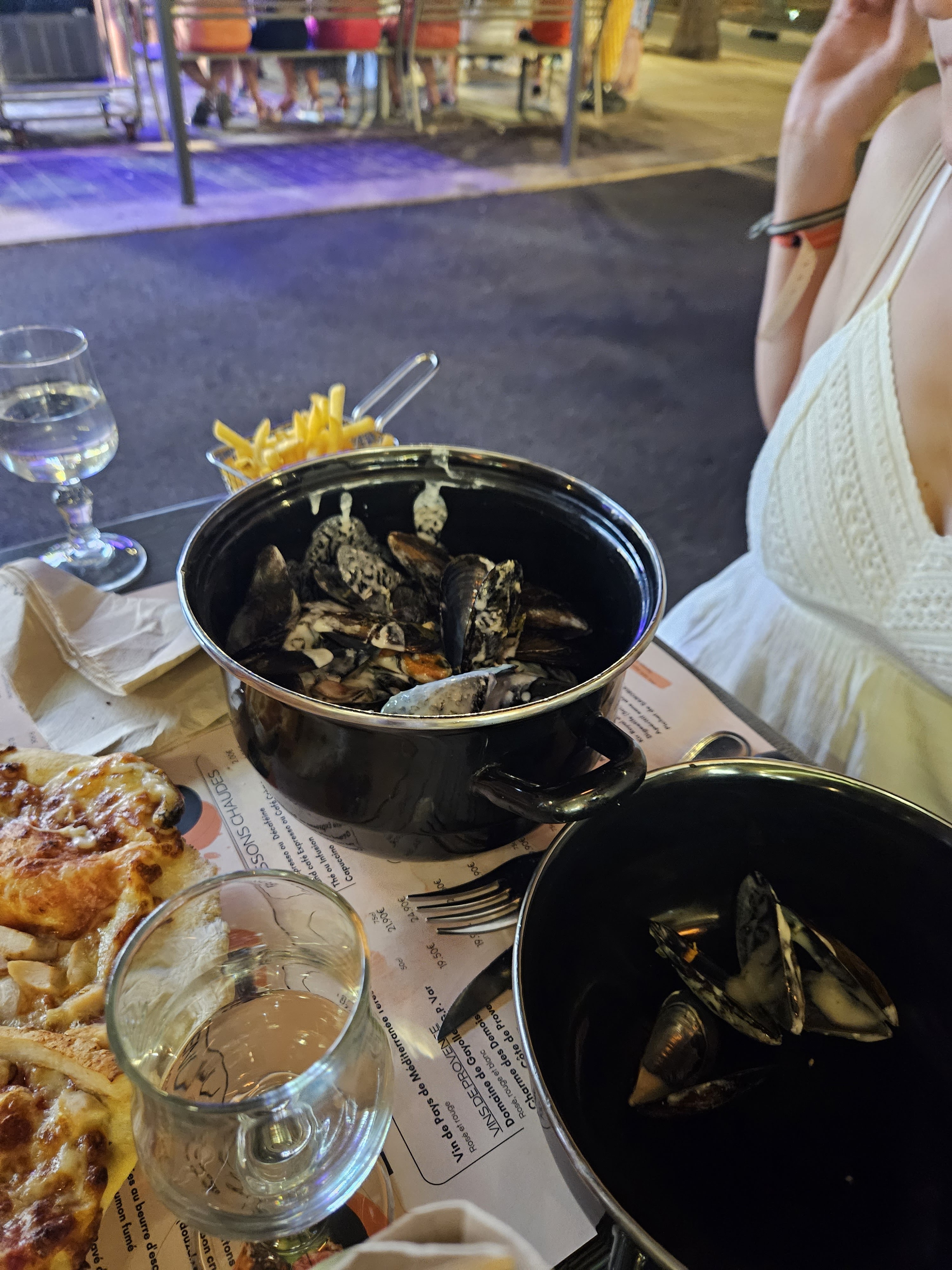 Bon accueil. Serveuses prévenantes qualité du repas très moyenne. Je n'ai mange que la moitié des moules. Elles étaient en majorité fermées les calamars n'étaient pas grillés et mous. Frites congelées. Cela ne vaut pas le prix!!!!! Déçue je n'y retournerai pas