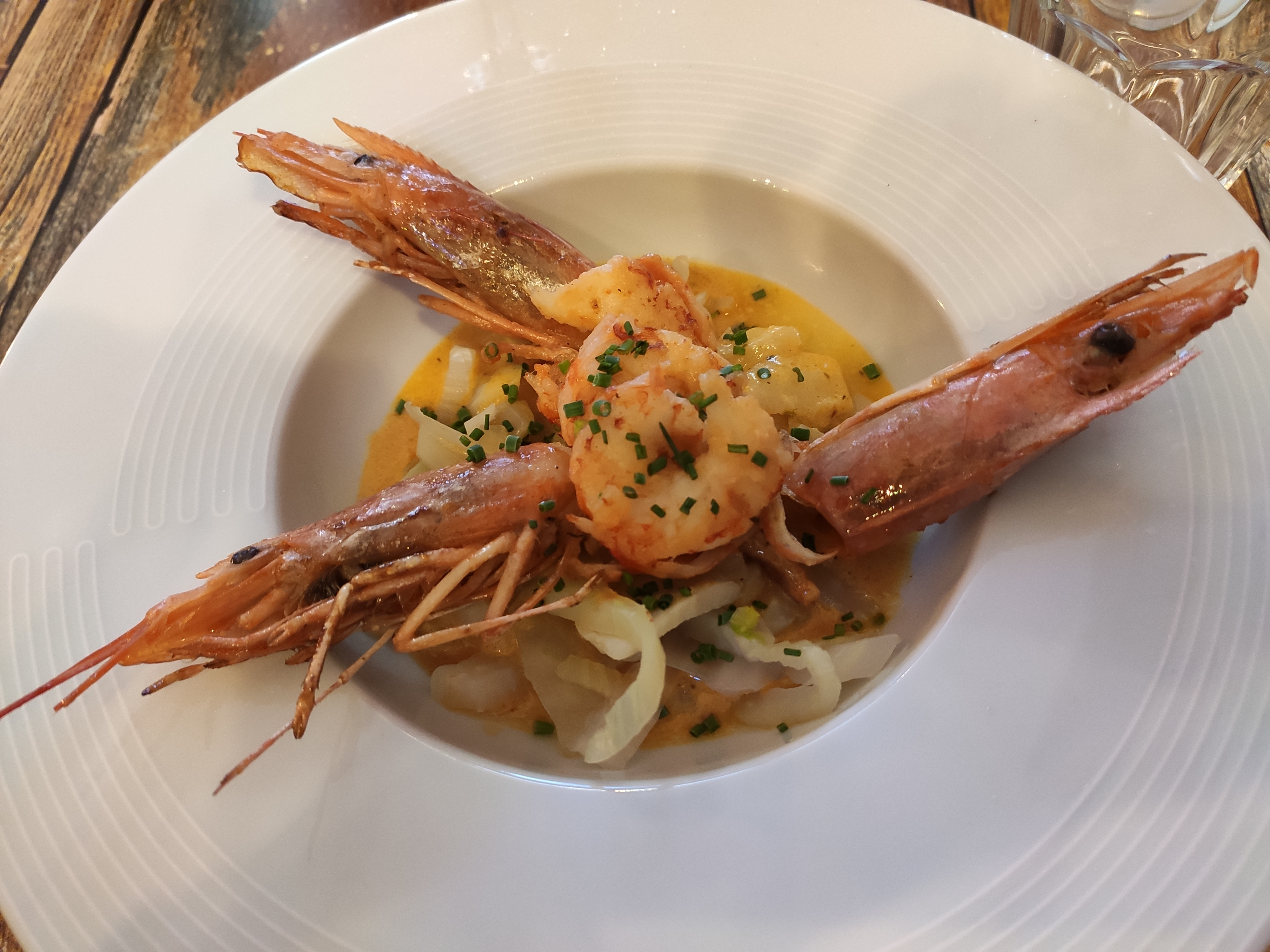Je met une étoile pour la cuisine car tout était surgelé, le poisson on dirait du Eco+ et le bœuf sur la brochette c'était pas le meilleur non plus... les gambas se faisait la gueule dans l'assiette... sans vouloir être méchant je ne comprends pas les avis des autres personnes... Pir qu'un resto routier... En ce qui concerne le service on a été très bien reçu et les serveuse ont été très sympathique Mauvais rapport qualité-prix 🥲