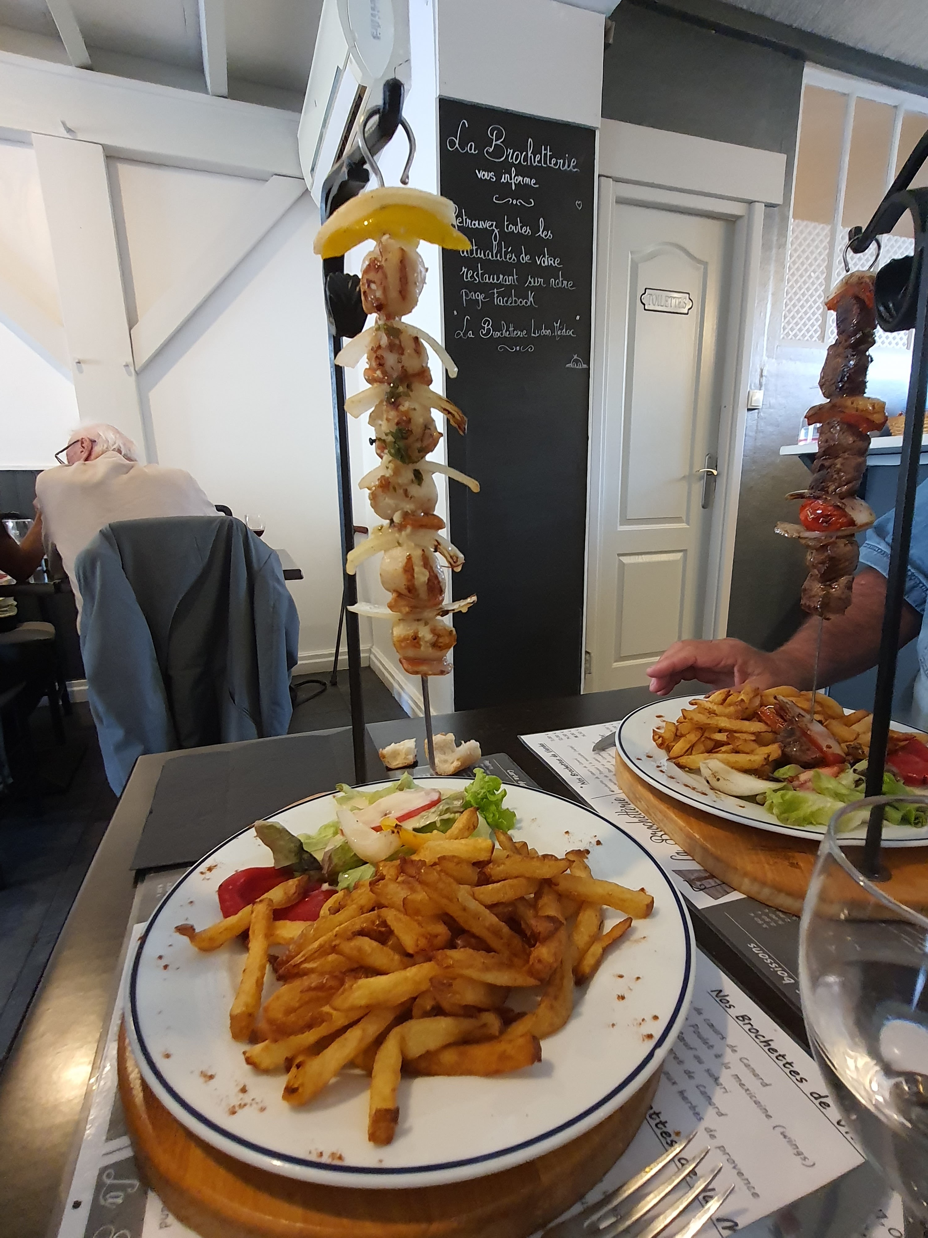 Félicitations à la brochetterie, nous avons très bien mangé, les brochettes étaient copieuses, très bonnes et d une grande fraîcheur. Les frites maisons et le vacherins excellent. Très bon rapport qualité prix . Et merci aux serveurs, très aimables et bienveillant .