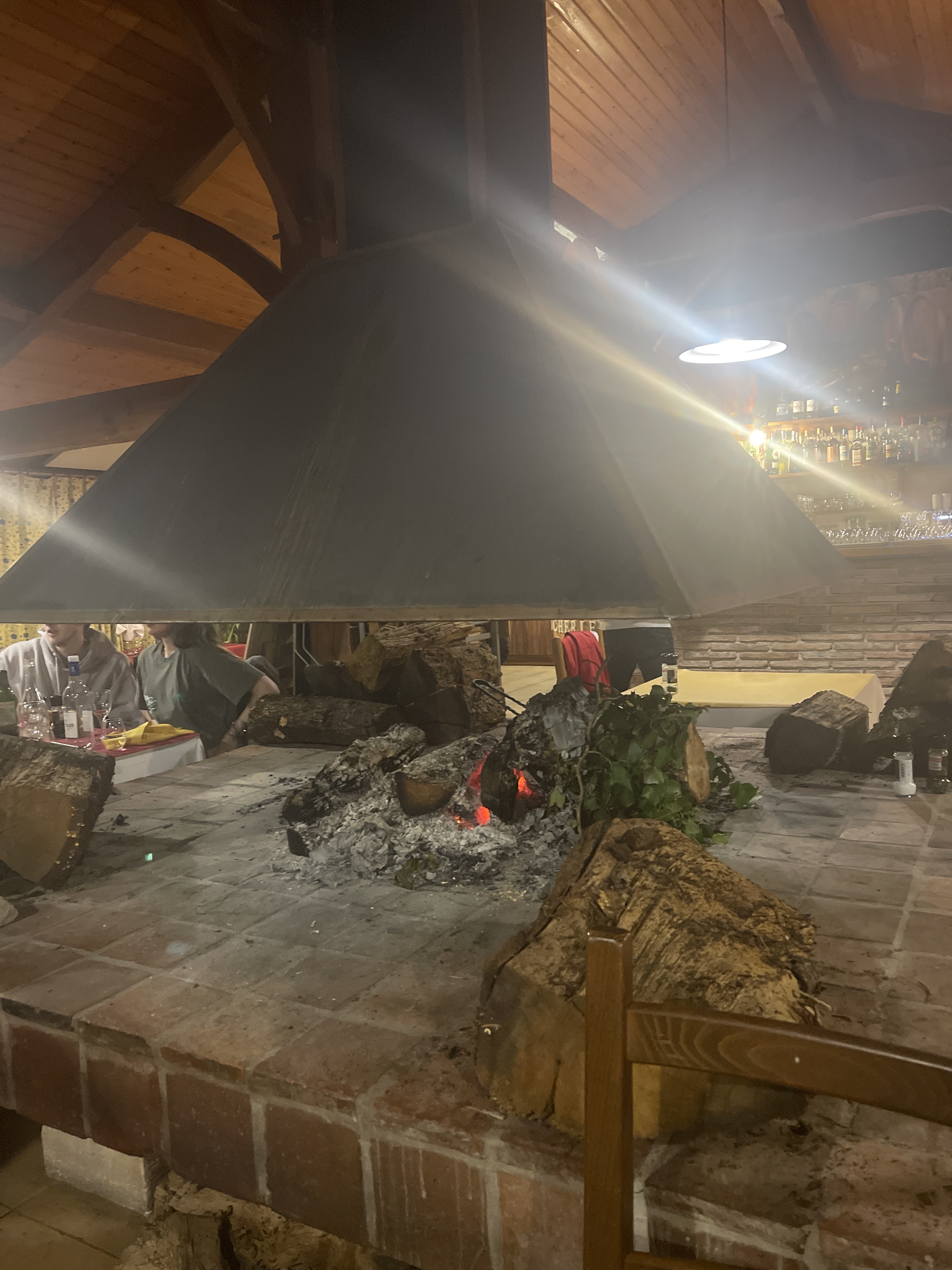 Bon restaurant. Sympa avec la cheminé en plein milieu.