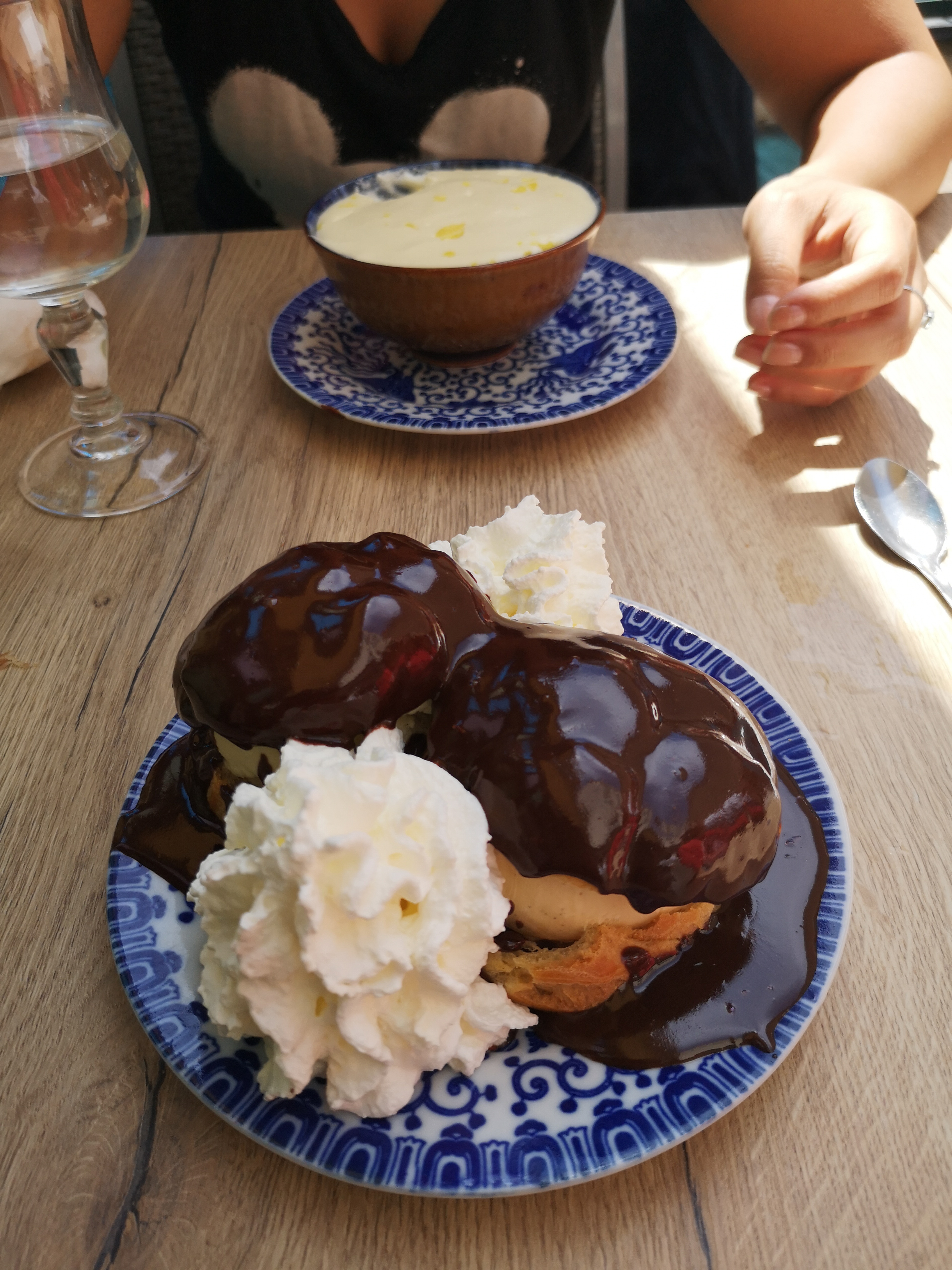 Très bon risotto aux crevettes. Profiteroles gigantesques au chocolat maison et des cafés gourmands qui portent bien leur nom !