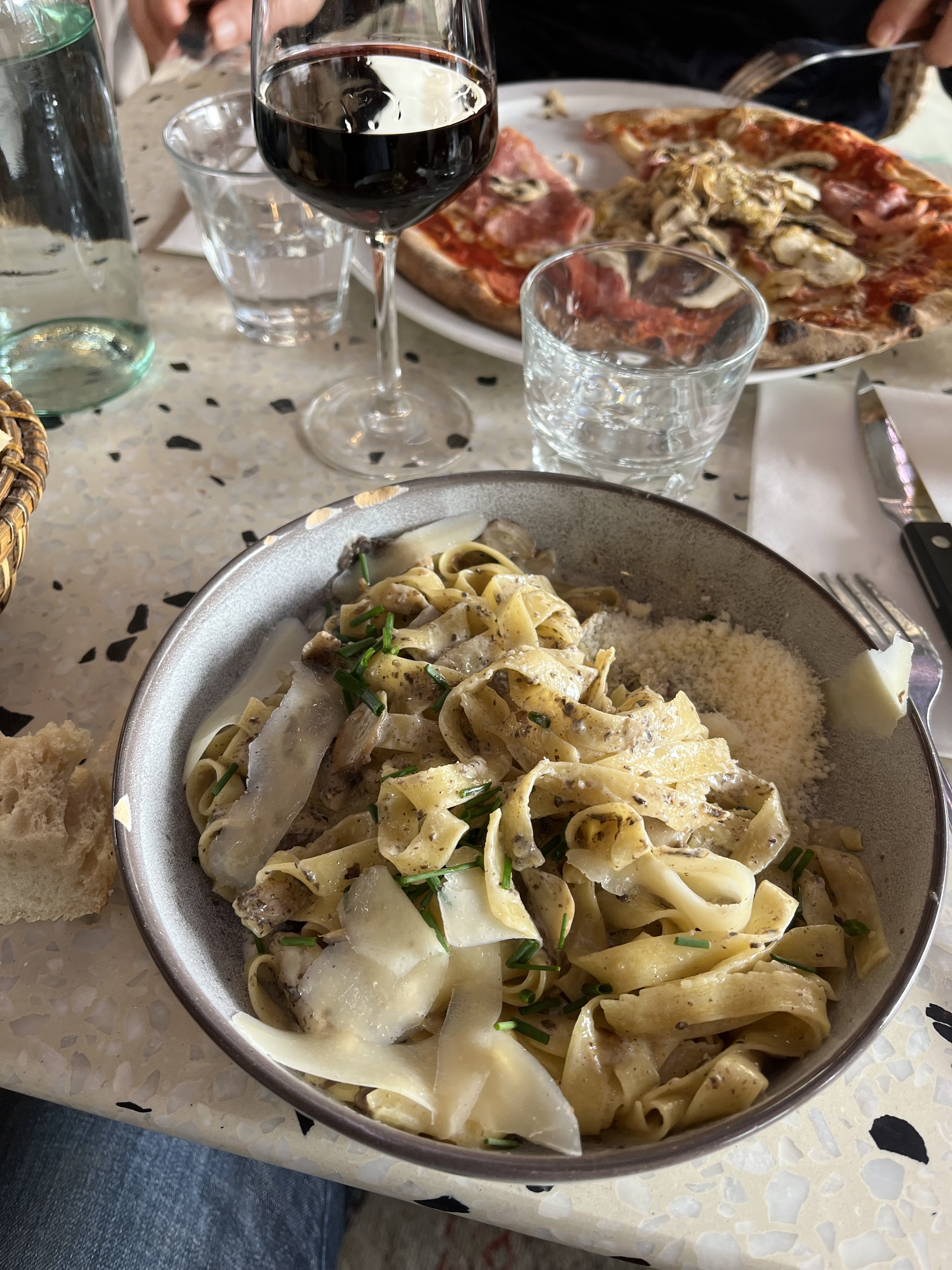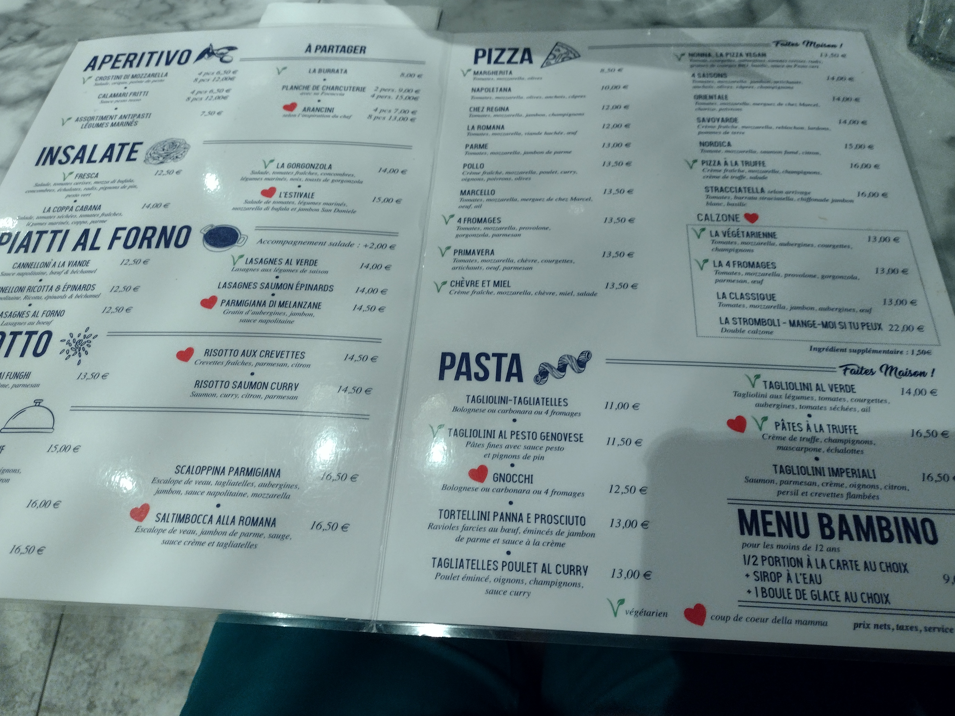 Vu nos assiettes, je crois qu'on a bien aimé ! 😂 Par contre en Italie on met pas les olives sur la Margherita, et dans la carbonara il n'y a pas de crème fraîche...mais bon je comprend que le menu soit adapté aux goûts des français.