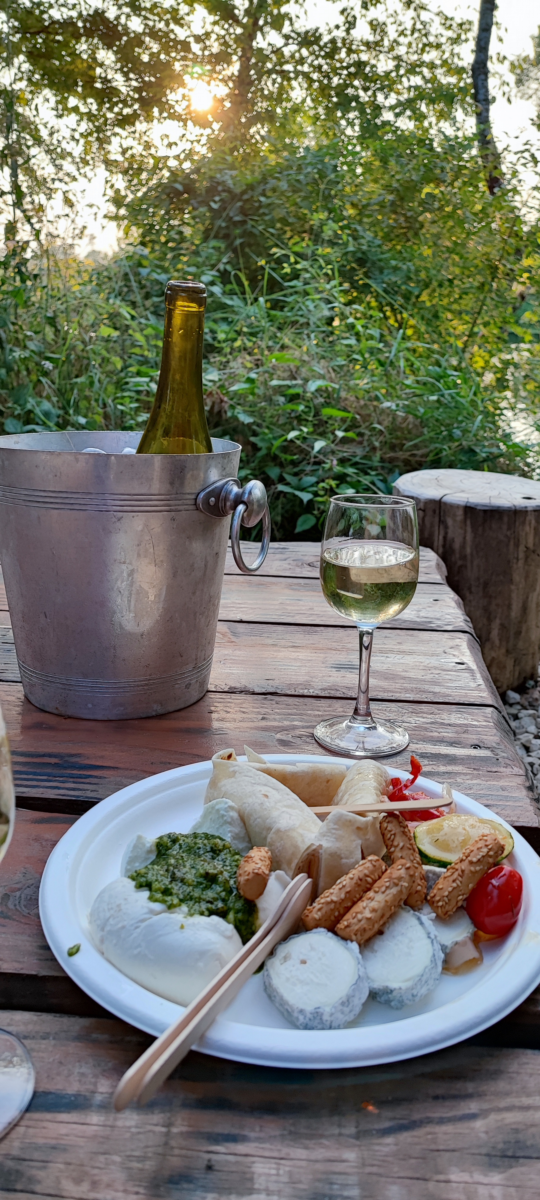 Venu par hasard, nous n'avions plus envie de repartir de ce lieu enchanteur, quiétude, calme, bons petits vins et assiette à croquer le tout dans un cadre champêtre et de bord du cher, ici pas de musique pour ne pas nuire à la faune et c'est une merveilleuse philosophie , nous habitons à 600km mais si j'étais du coin nos passages seraient fréquents et régulier , compter 14 euros pour une belle assiette de fromage et 18€ pour une bouteille de blanc du coin