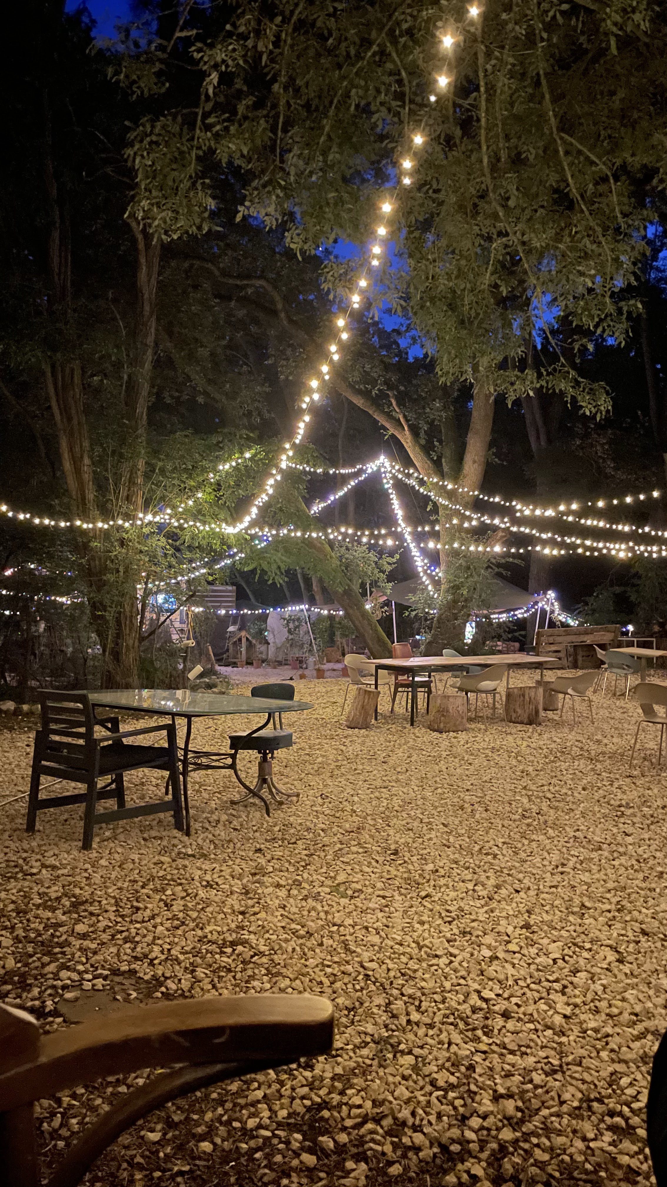 Une parenthèse enchantée que ce splendide sous bois constellé de tables dont parfois certains pieds sont les troncs... Un lieu comme on aime ( et comment ne pas...), en bord de Cher, un peu foutraque, alternatif, ombragé et calme... Petite carte mais nourriture excellente et fraîche... Accueil cordial, a l'écoute des gens... On vous soigne aussi ici parfois par une sorte de lyrisme ( en lien avec l'esprit de vos jeunes hôtes ... Et du lieu...). Donc, pour finir, dans la contemplation d'un soleil déclinant filtré par les branches, je dirais que l' on s'est régalés à tous points de vue... Dom