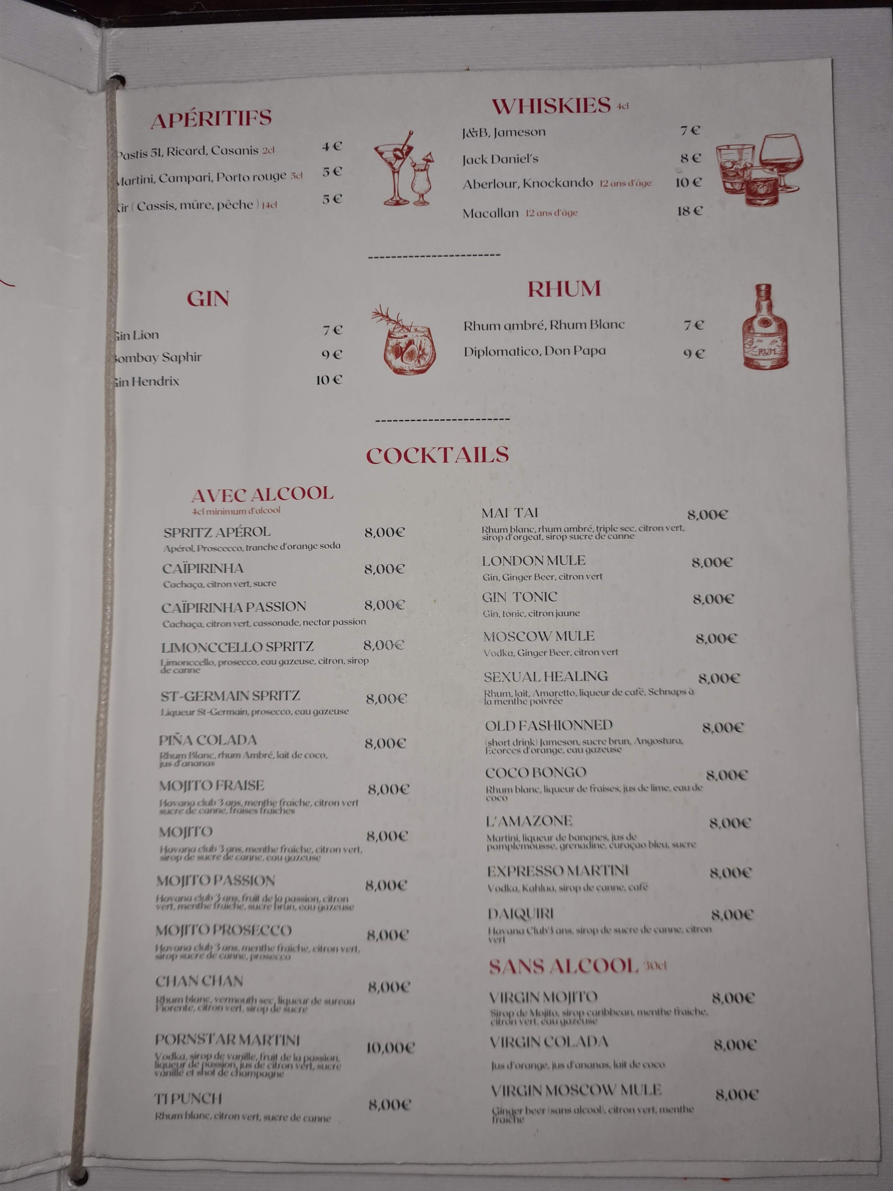 Serveur sympa, mais le niveau de la cuisine a vraiment baissé. Menu basique. Au fait le menu ils pourraient le re-imprimer...