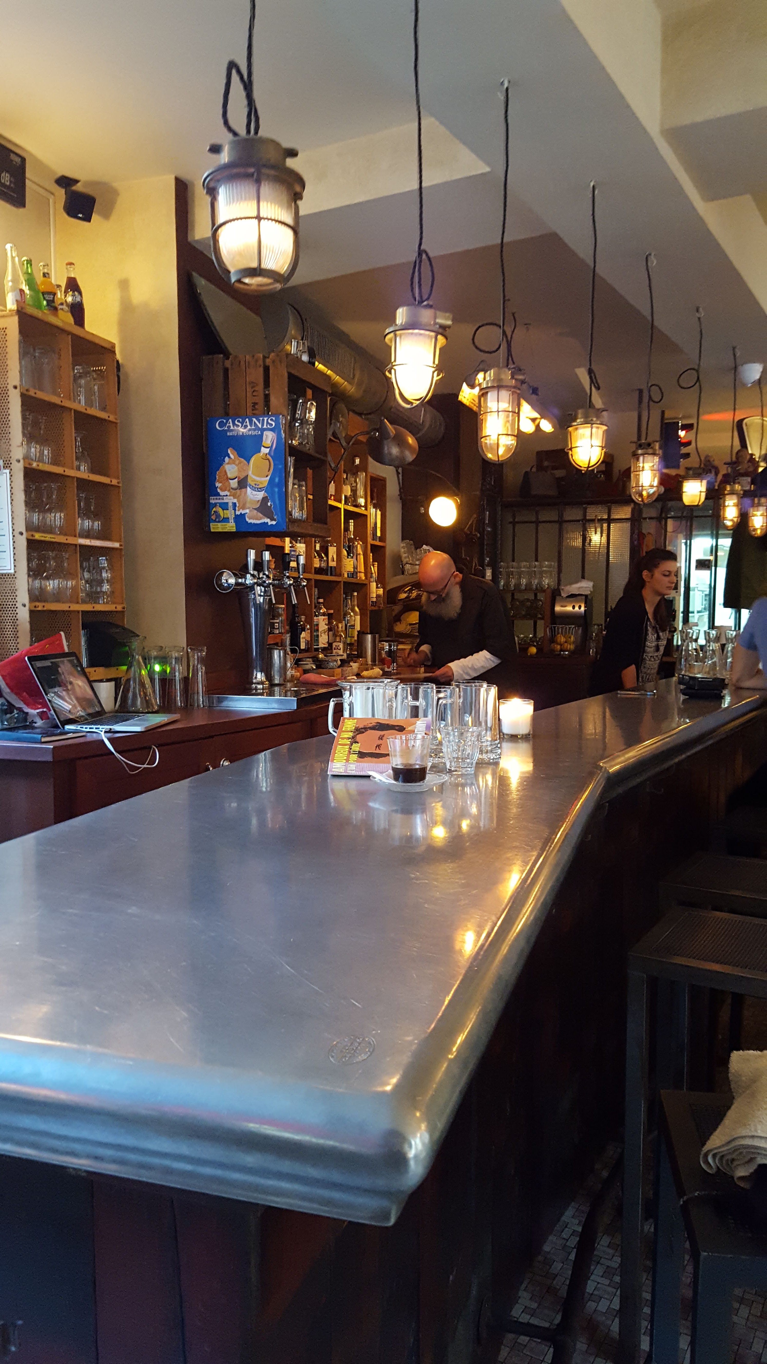 Petite brasserie de quartier sympa. Je pense qu'il est préférable d'y boire un verre en terrasse ou dans la salle vintage et bien décorée. Le menu est prometteur et pas cher, MAIS une fois les assiettes arrivées, grosse déception : le thon mi-cuit était sec ét anchi cuit, le travers de porc était très sec, grillé et très dur, et les plats sont arrivés à peinechauds. Et.que dire des profiteroles : 2 ridicules petits choux à peine garnis de glace vanille avec une pointe de chocolat !!! Dommage. Heureusement, le service était agréable et encore une fois le cadre sympa.