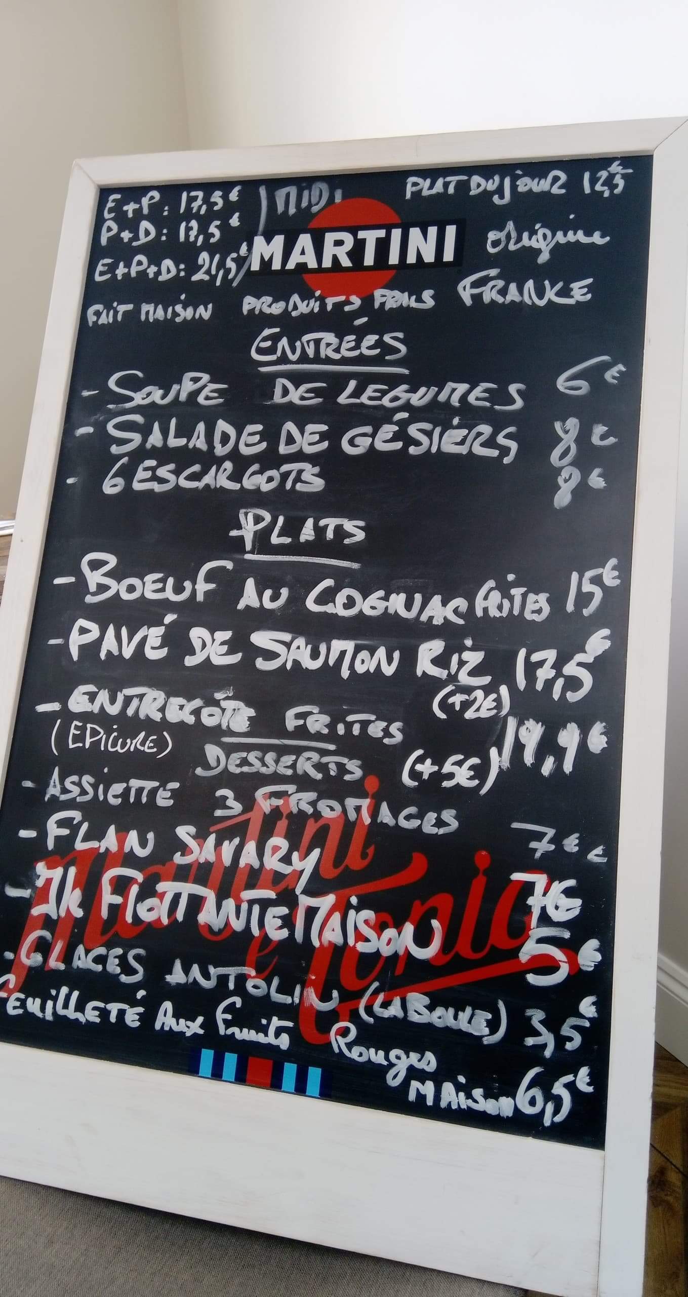 Une petite carte... Pas de plats à rallonge... Et donc un gage de qualité et de fait maison. Le patron est un véritable passionné et ça se ressent dans l assiette. Cocktails excellents. Charcuterie à tomber. Quand a l entrecôte... Un délice avec les frites et sauce maison. Si vous voulez du blind blind en face du château de Chantilly ne venez pas ici... Si vous voulez vous régaler sans chichi vous savez ou aller !