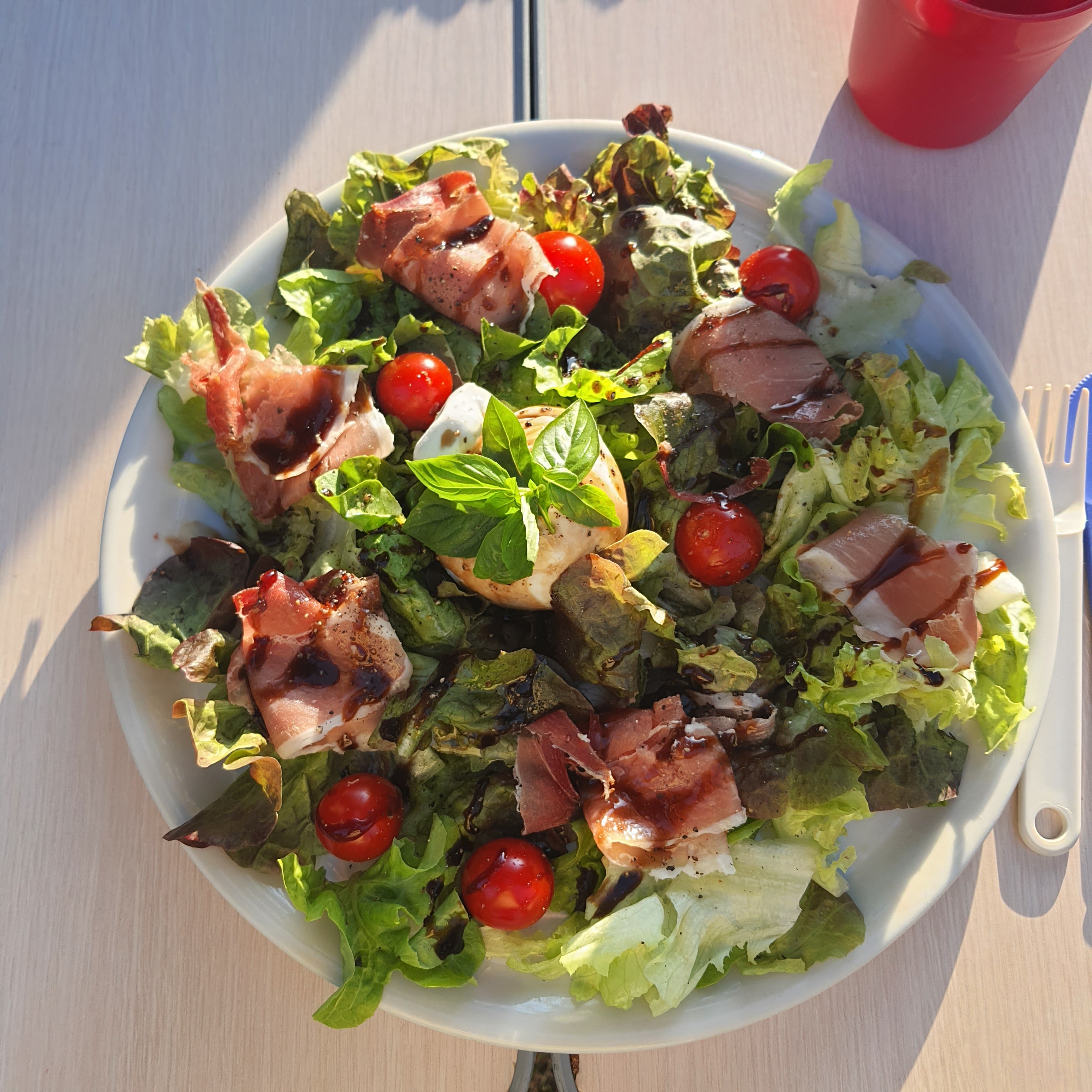 Petit repas au bord de l’étang ! C’est calme et détendu, salade copieuses et tiramisu excellent !