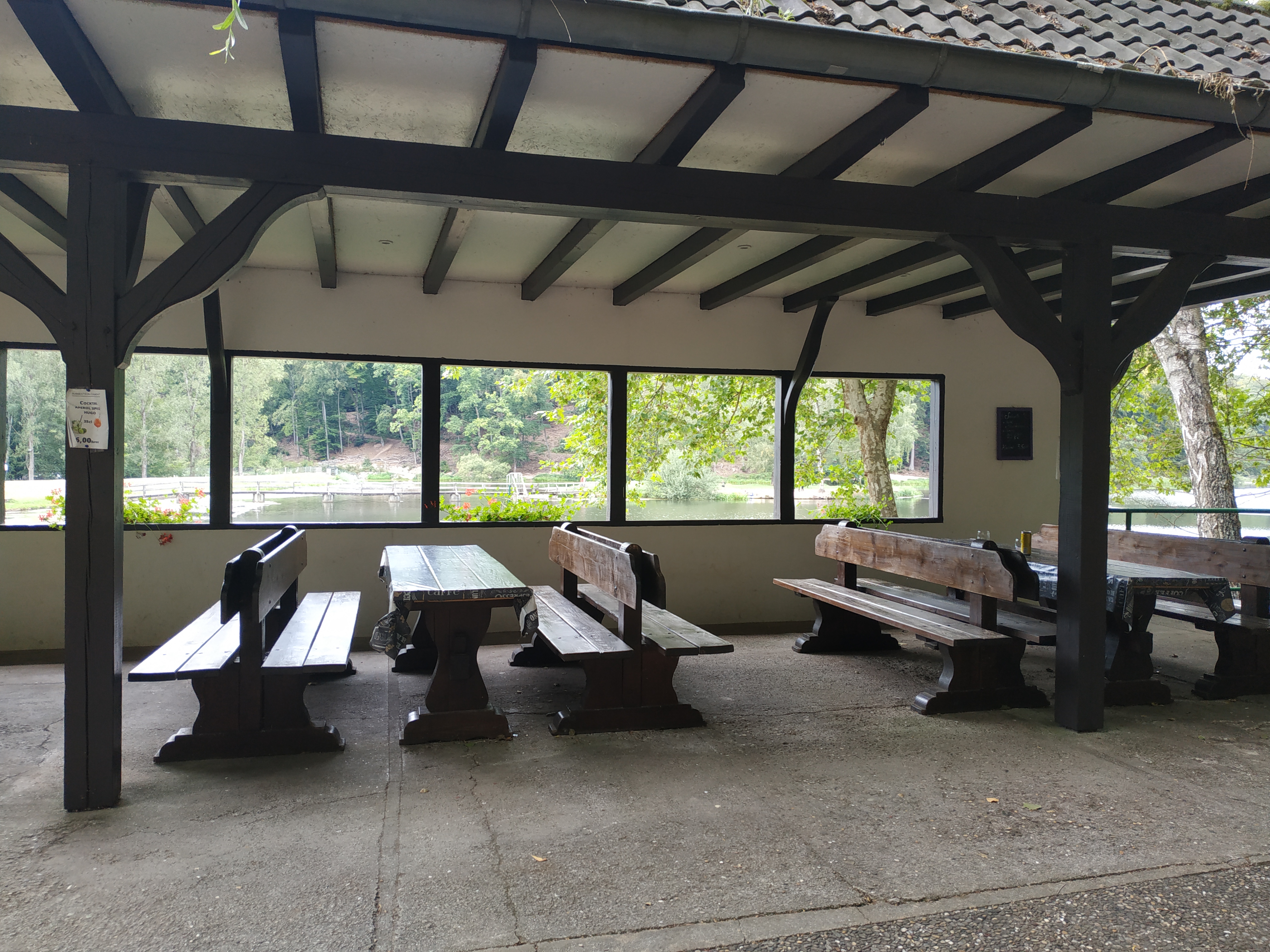Très convivial, bonne nourriture, ombragé, même à l'intérieur par mauvais temps. Et d'un côté on peut sauter dans le lac de baignade, et de l'autre côté on va dans la forêt. Trouver une place de parking peut être un peu difficile. Mais d’une manière ou d’une autre, cela a toujours fonctionné. Sentiment de vacances absolu.