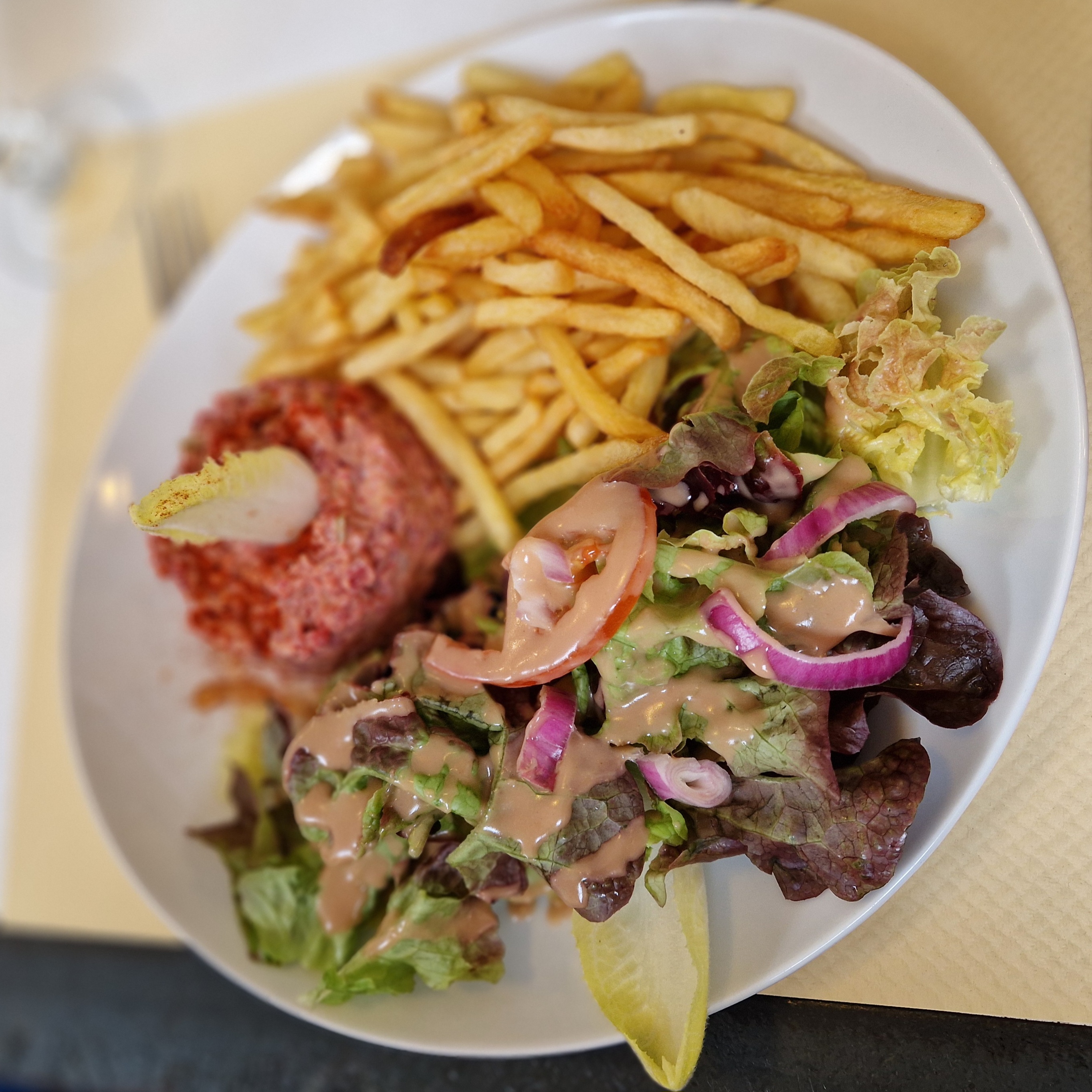Lieu chaleureux et accueillant ! La récente révision de la carte propose une sélection de plats délicieux et simples ! (Mention spéciale pour le steak tartare préparé sur place 😋) Un incontournable pour une halte déjeuner à Guise. 😉