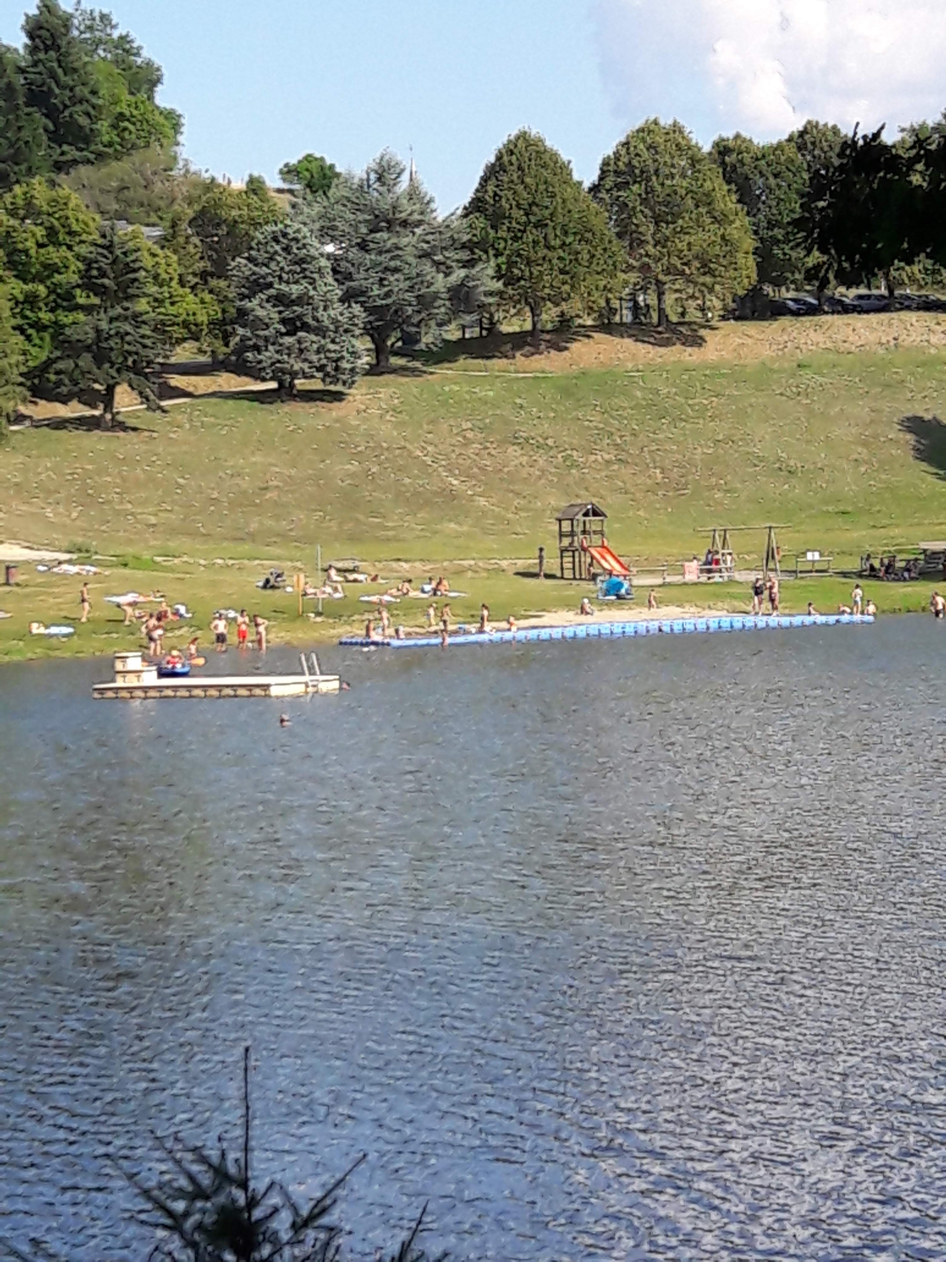Petit plan d'eau mais très agréable !! Pédalos et baignade surveillée, on peut observer des tyroliennes dont une survole le plan d'eau...