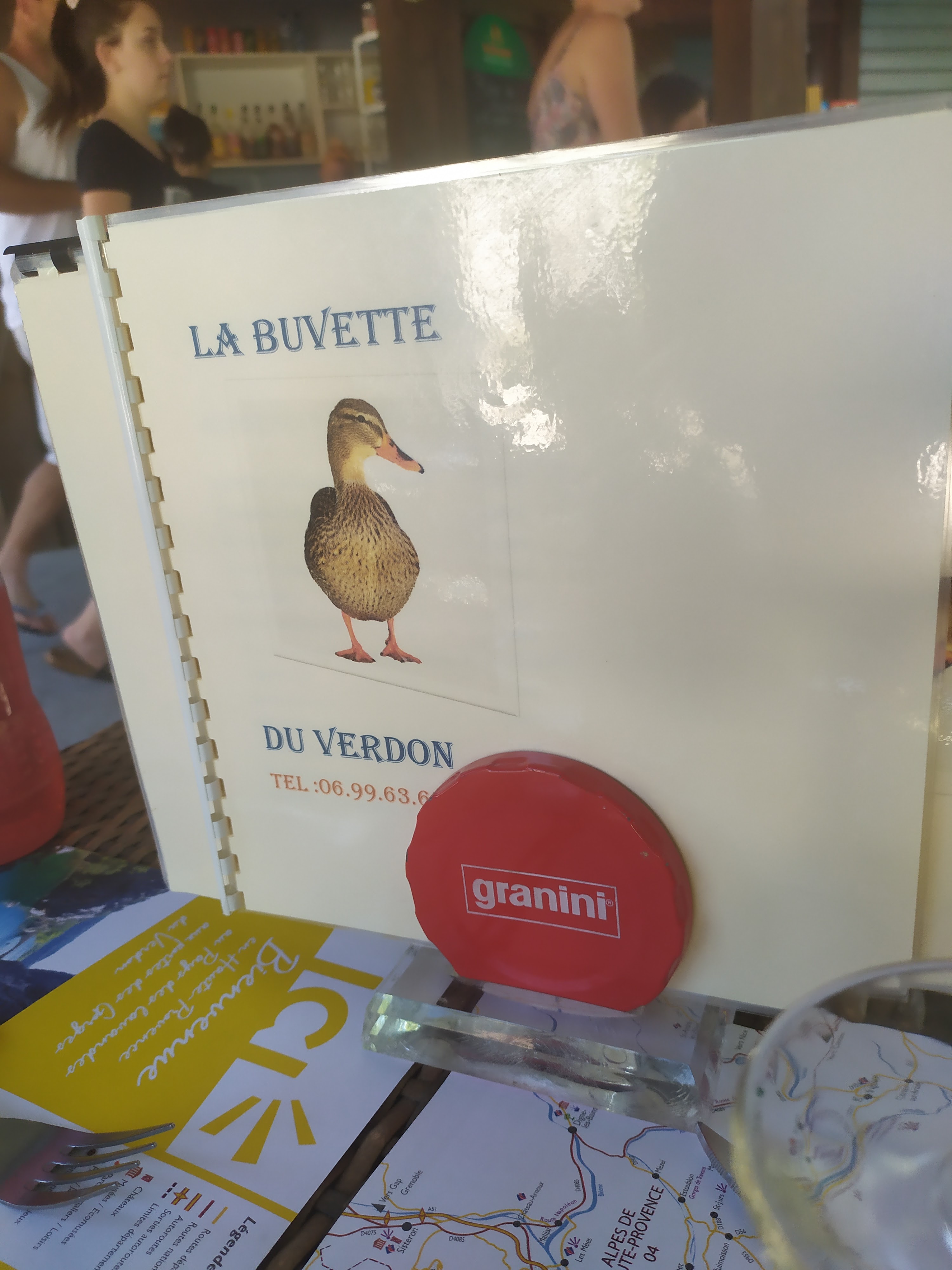 Personnel sympa, buvette au bord du Verdon, petits canards, papillons...