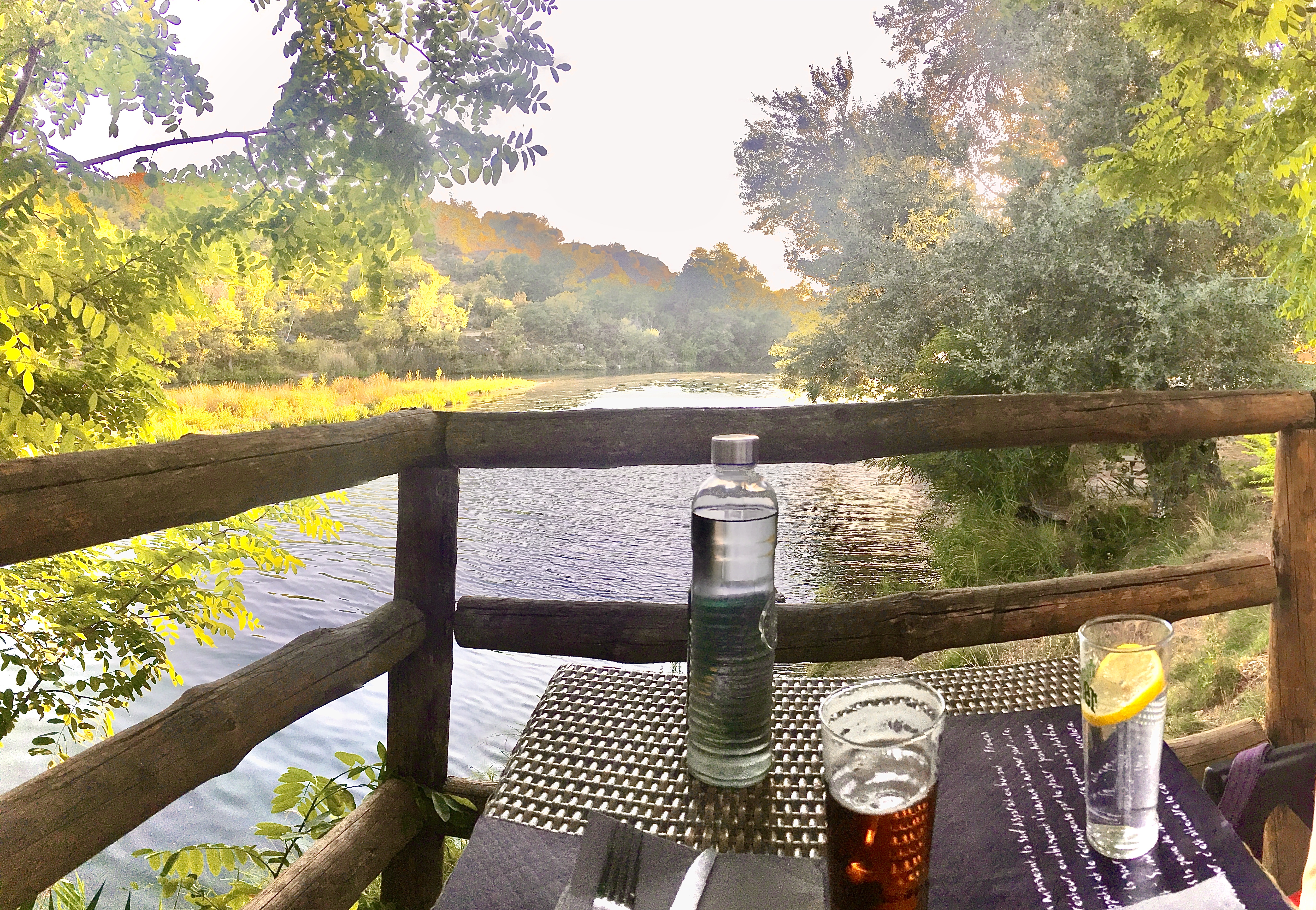 Buvette Verdon.. Pas forcément un verre d'eau..Entre autres boissons, il y a aussi une palette de glaces gourmandes. Un air ambiant de guinguette champêtre dans un environnement pour le moins bucolique.. Des notes de musique distillées par un saxophoniste talentueux et accompagnées par la voix feminine et suave de sa partenaire nous distillant des airs chers à notre mémoire. . Des consommateurs attentifs et attentionnés. A vrai dire c'est une pause qui fait du bien.. et qui s'y impose.
