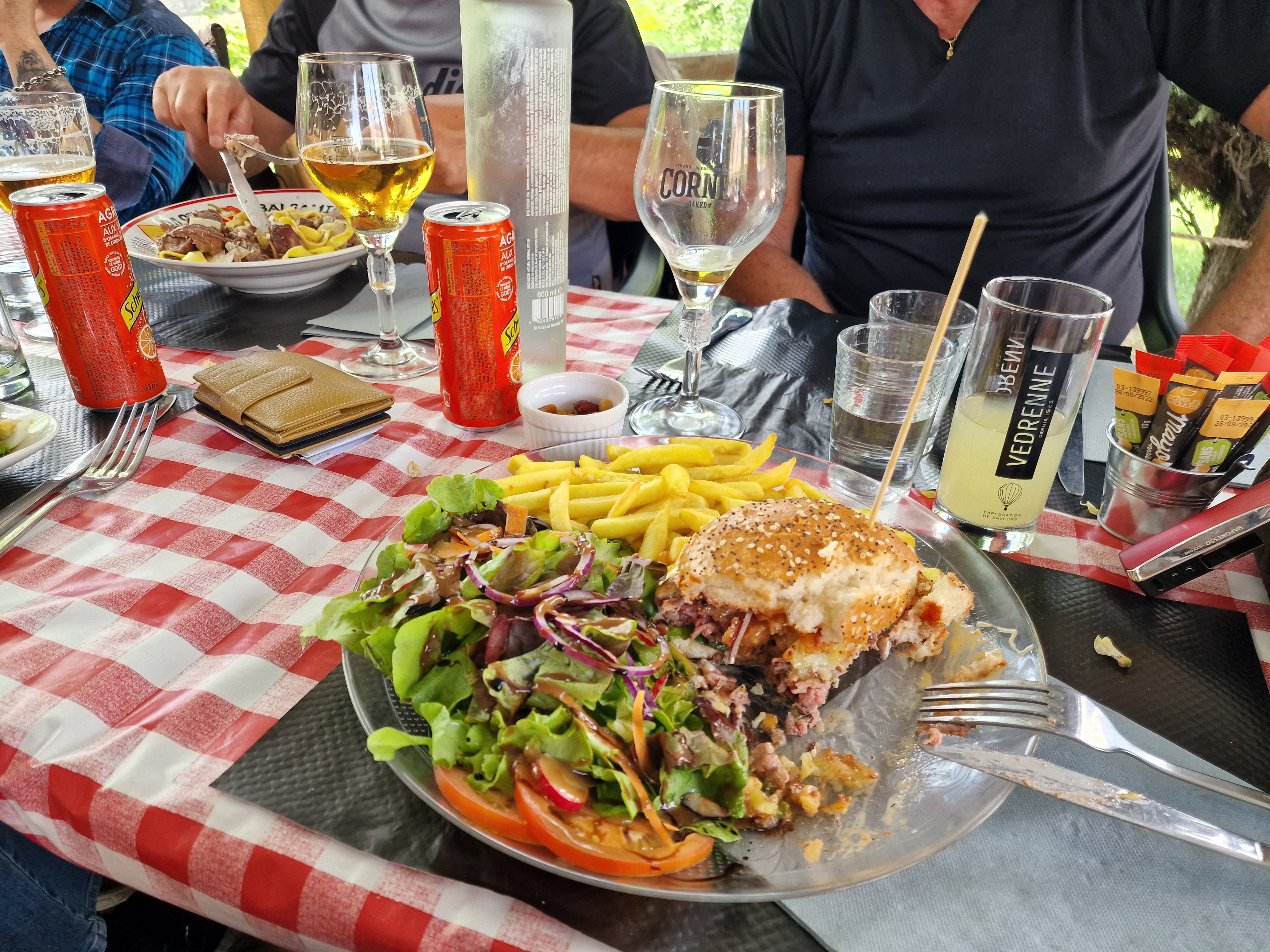 Beaucoup à dire sur cet endroit à part. Cadre top, buccolique et charmant. Service jeune et très sympathique. Patron très gentil, très sympathique. Venons en aux assiettes. Nous étions quatre dont deux ado. Les hamburgers maison ont beaucoup plu mais ma daurade sauce aux câpres était digne d'un très bon restaurant. Le meilleur plat que j'ai mangé depuis très longtemps. En allant payer mon mari s'est même vu offrir le digestif du patron. Pensez à réserver. Ils étaient complets plusieurs jours à l'avance. Ne servent que le midi. Je vous souhaite une bonne continuation! Portez vous bien. J'espère revenir.
