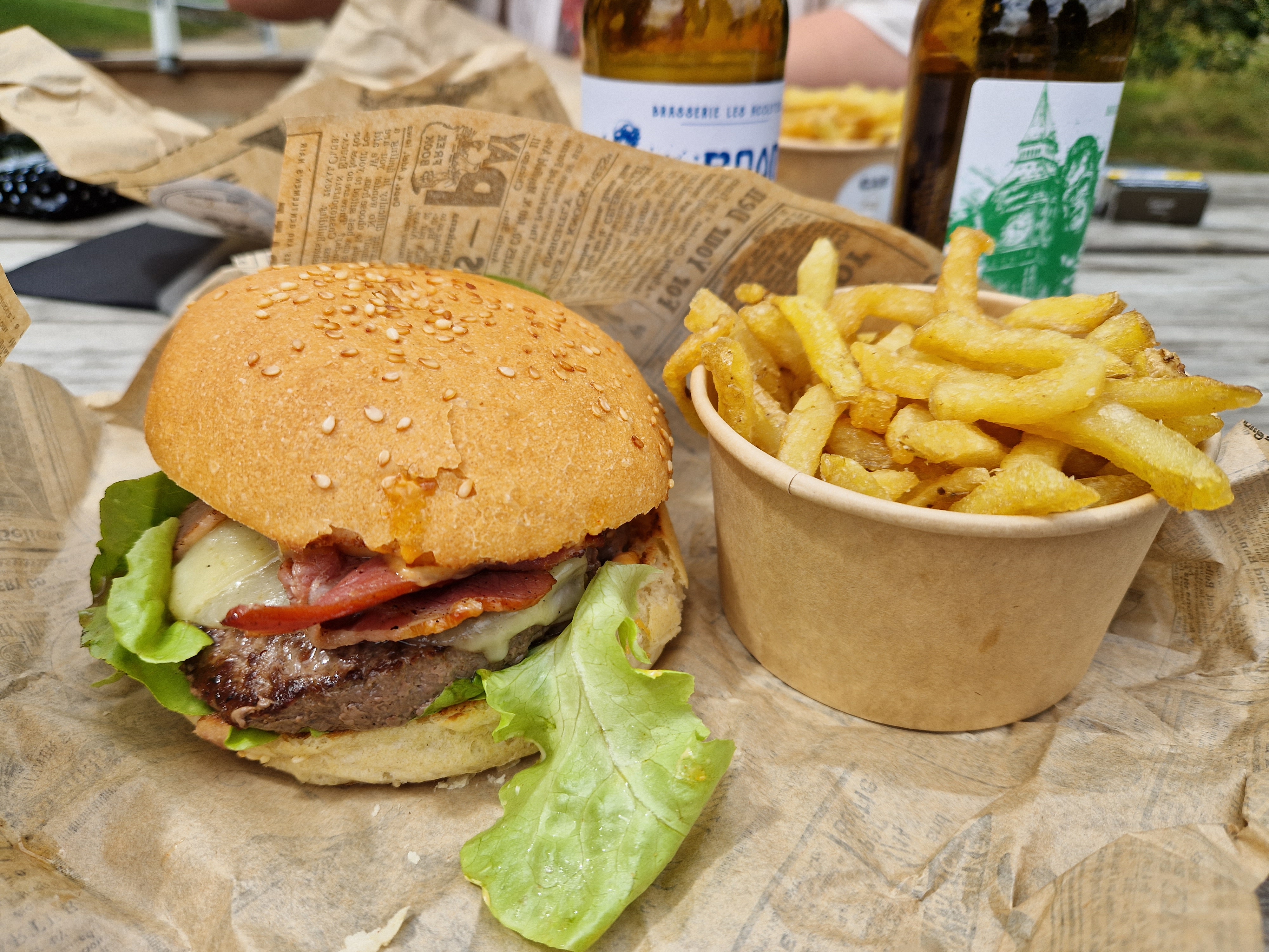 Accueil sympathique Burger de qualité biere locale Et si envie d'un verre de vin une boutique de produits locaux peut satisfaire votre soif ! Je recommande !!!