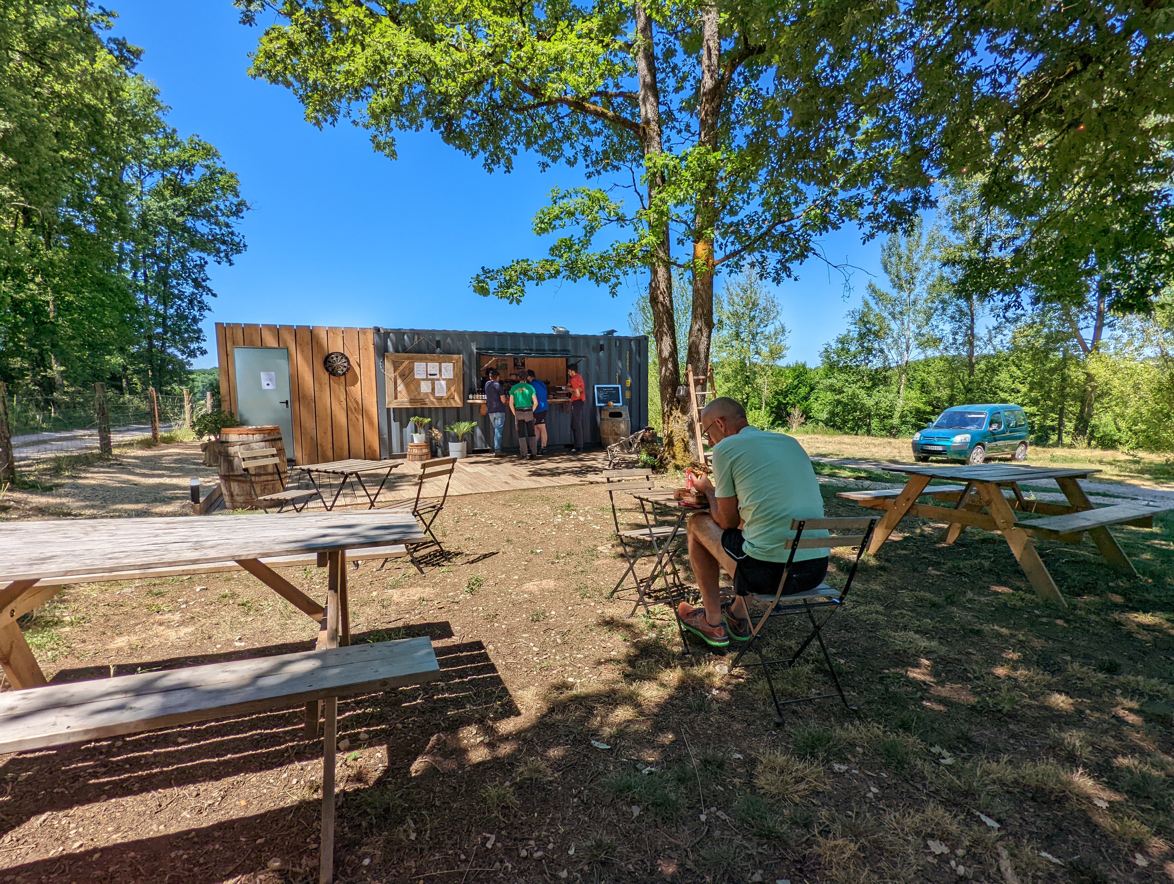 A la sortie du gouffre de Padirac et de la foule qui en découle, très heureux de trouver un petit coin de verdure tranquille à 10 minutes avec d'un côté une Caravane A Burger généreux avec de délicieuses frites faites maison et de l'autre la possibilité d'acheter une bouteille de vin bien fraîche avec de précieux conseils, voir même des glaces ! Une bonne surprise 😄