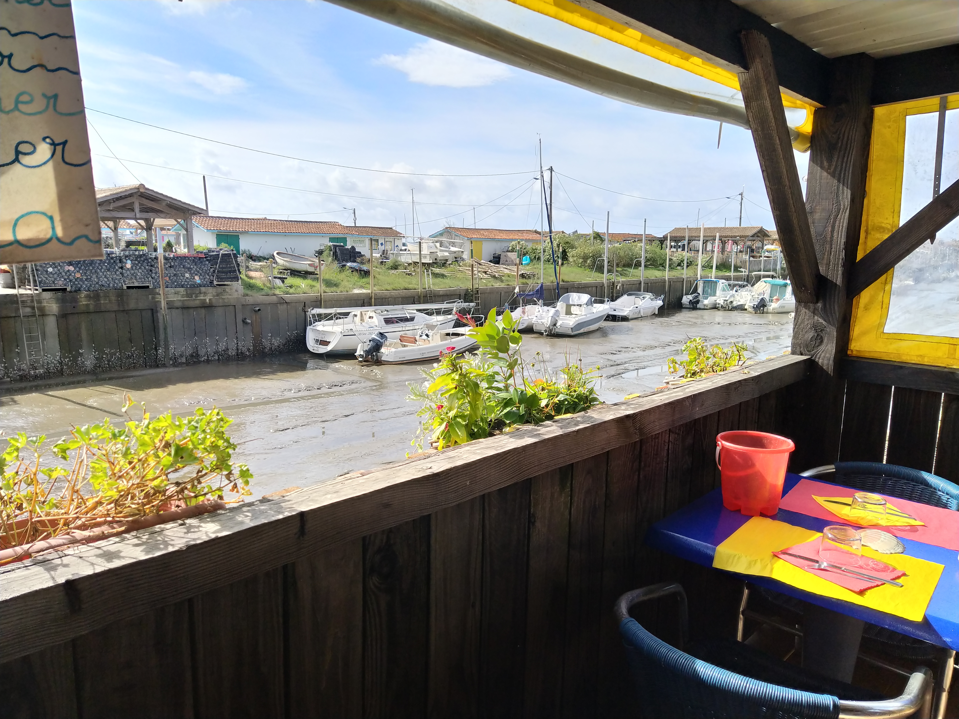 Situation parfaite en bout de ponton 😊 Idéal coucher de soleil, huîtres maison vin blanc bigorneaux crevettes pâté....