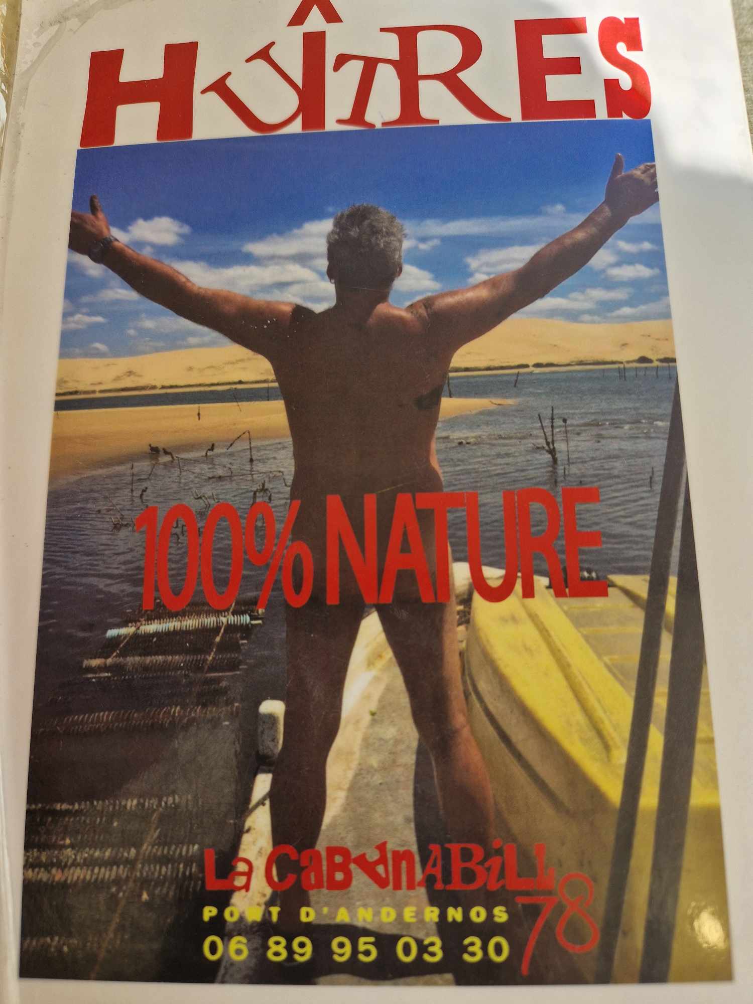 Dimanche 7 janvier, je m arrête sur Andernos visiter le port ostréicole, je repère cette cabane ( la seule ouverte car il vend des huîtres de l île ré, pas de noroxine). Vers midi j entre sur la terrasse extérieure, le patron arrive en scooter en criant alléluia, je lui indique sur son affiche des plaisantins ont écrit immodium et Smecta offerts. Il me dit que c est lui et que c est le seul a avoir de l humour sur le port. Il entre dans la cabane où se trouve 2 employés que je n avais pas encore vus. Il parle organisation du boulot, fort (je n' ai pas besoin d écouter). J attends dehors et regarde la déco en attendant. Il sort puis re rentre, reprend son discours. Un employé lui dit qu il y a quelqu'un(moi). J entends le patron dire non elle a pris une douzaine d huîtres elle a besoin de rien ( je pense à de l humour). Il sort je lui demande gentiment si c est fermé ou ouvert. Il est midi, y a personne, c est ferméet il ferme la porte!! J ai pris ailleurs une douzaine de bonnes et grosses palourdes que j' ai ouvertes et dégustées sur le bord du bassin, c était parfait!!😁 Ça m aurait dérangée de lui donner de l argent à lui. C est un dérangé et c est très cher : 6 huîtres n3 10e avec apéro maison offert. Si on ne boit pas d alcool, cela fait mini 13e pour 6 huîtres!!!! Il n y a que la déco atypique qui soit intéressante ici et on l'a voit de l extérieur. Allez voir ailleurs, vraiment