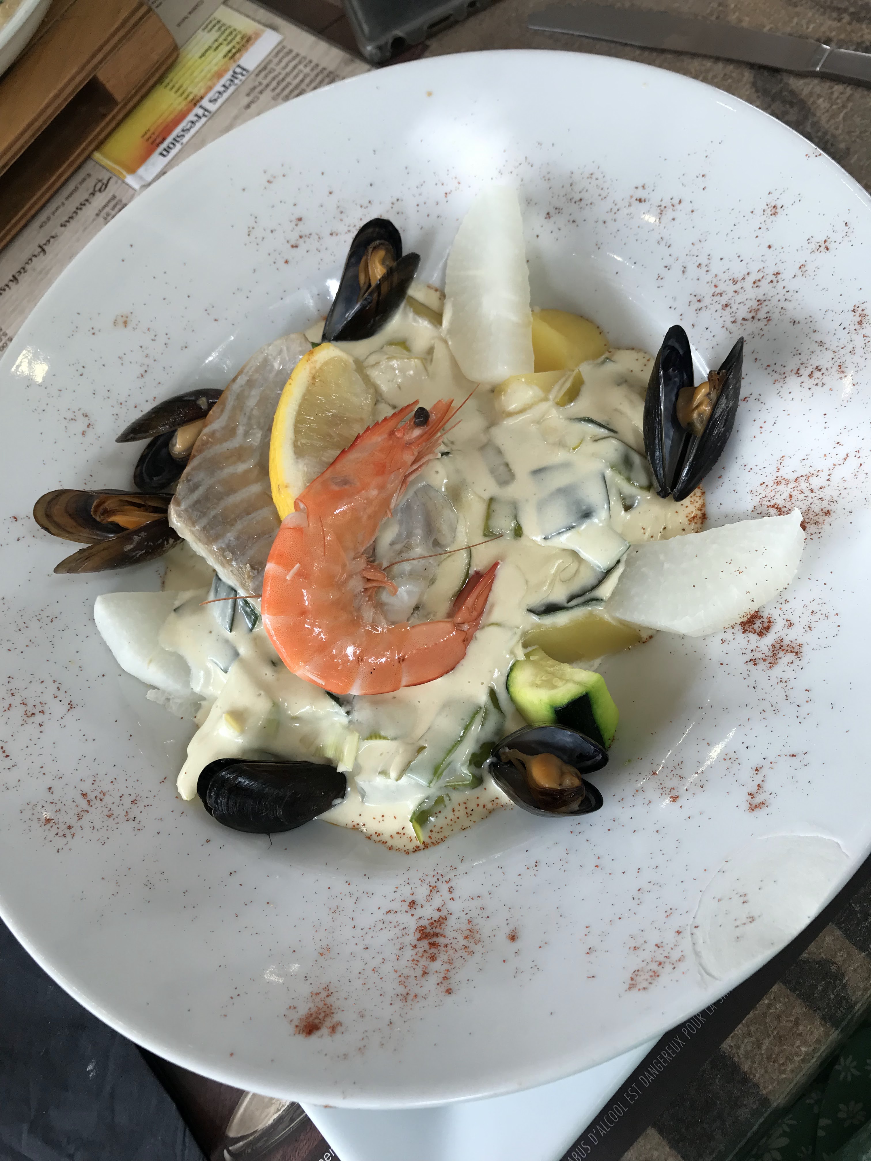 Bonne nourriture à un prix raisonnable. Le menu semblait plus petit que le précédent mais ce qu'il y avait était excellent Dommage que nous soyons allés déjeuner un lundi après une semaine orageuse car pas de moules ! La prochaine fois....