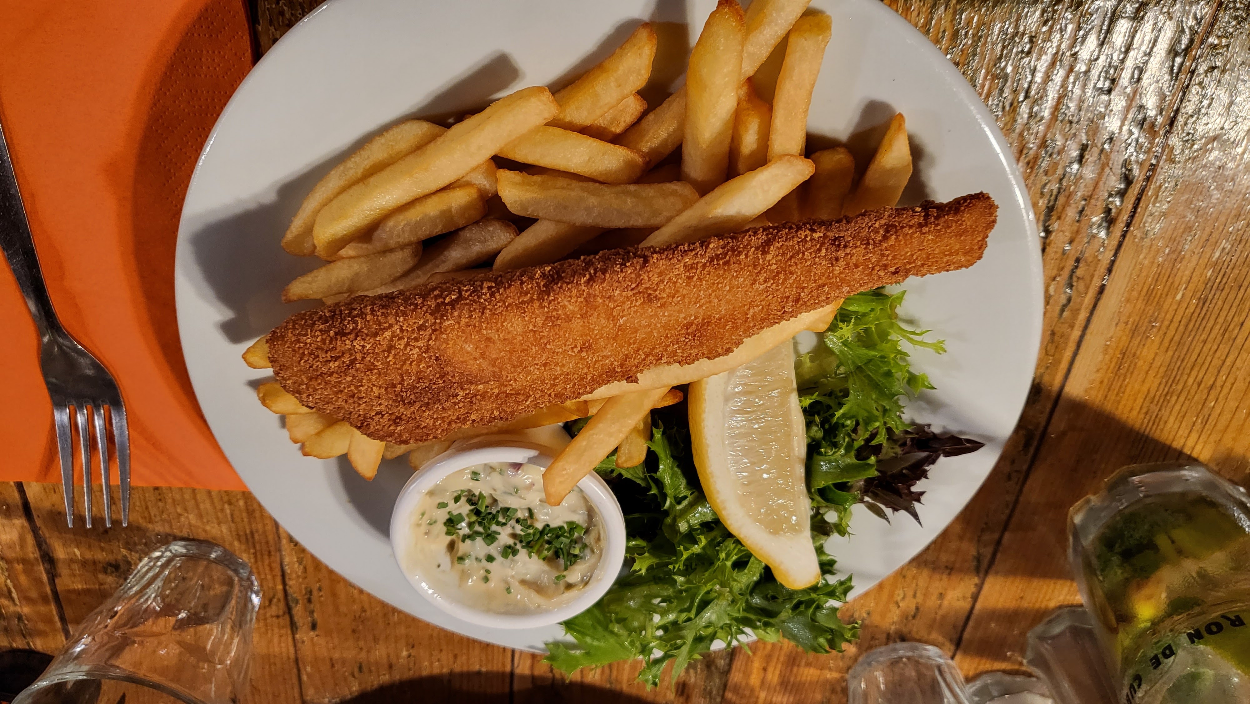 Endroit très sympa, déco façon chalet de montagne. Très bon fish and ship
