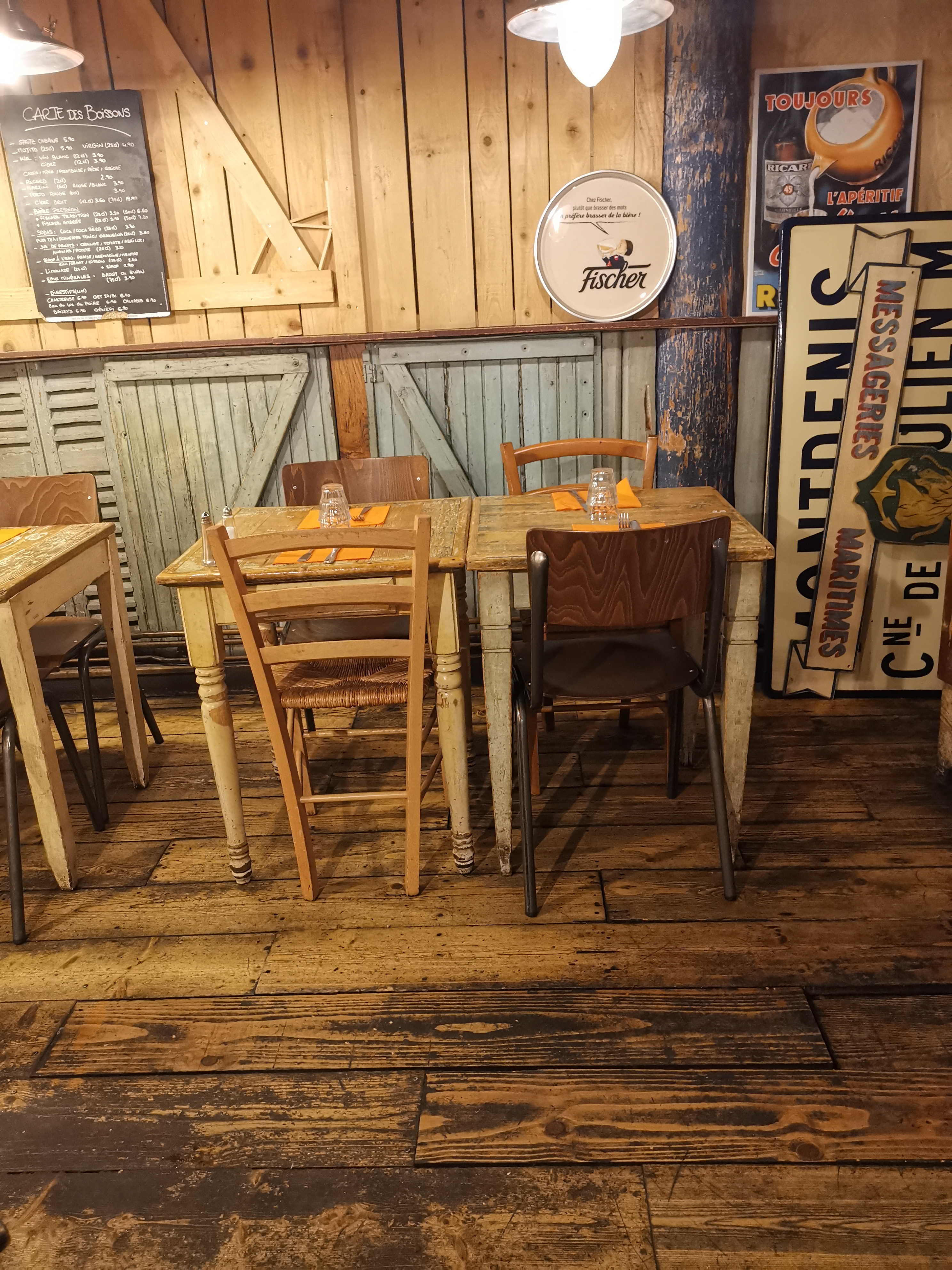 Comme indiqué, ambiance cabane! Mais à la vue de ma tartine tiède parsemée de quelques tranches d'andouillette...j'ai regretté un bouchon Lyonnais...quand à l'accueil... froid...mais ma fille aime...