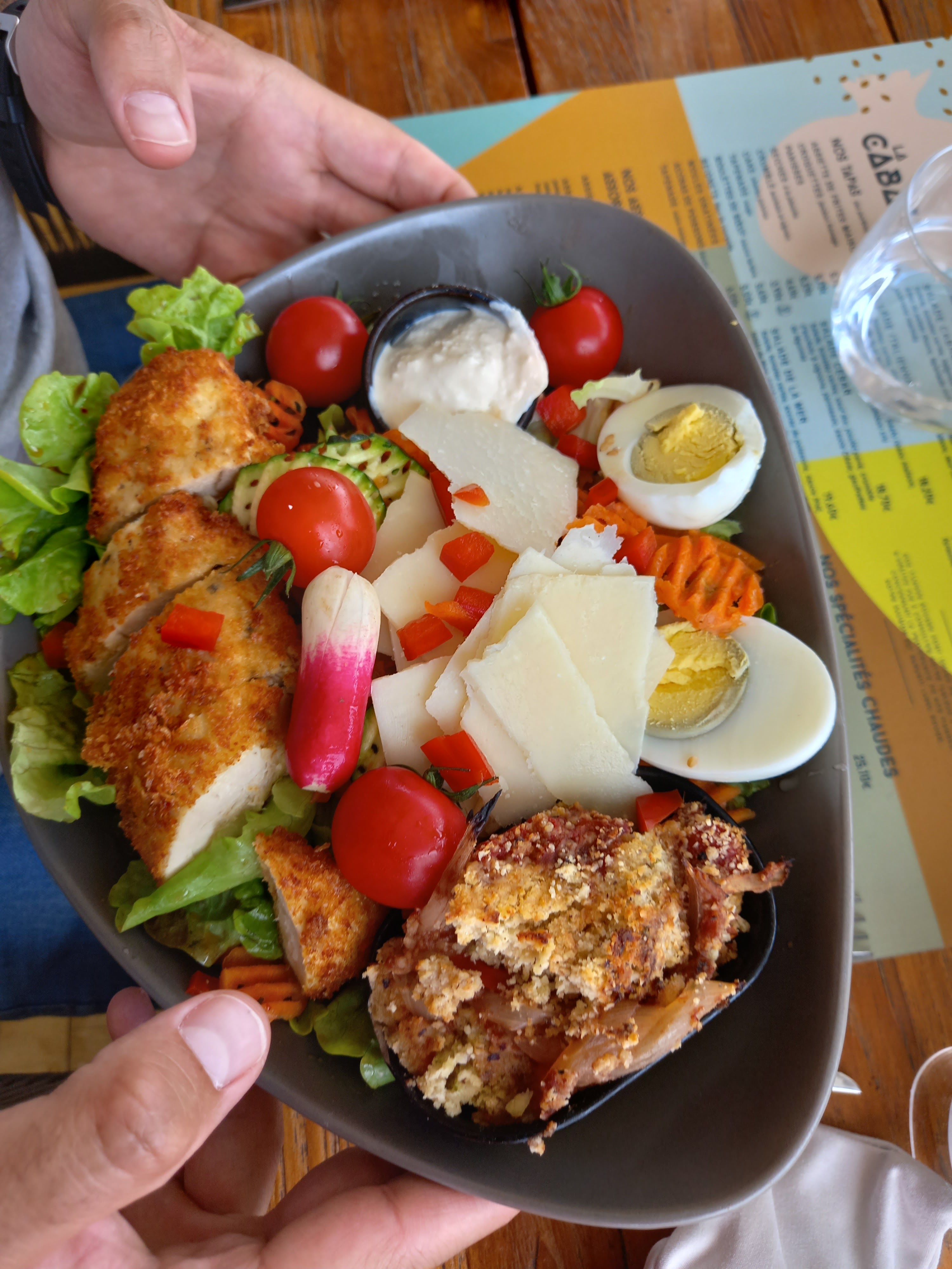 Je suis déjà venue plusieurs fois à la Cabane, nous sommes toujours bien accueillis, le personnel est très sympathique et l'ambiance super agréable. Large choix de tapas, plats, boissons et desserts! Les prix peuvent sembler un peu élevés mais par rapport a la quantité, c'est tout a fait raisonnable Je conseille fortement, vous ne serez pas déçu! ☺️ C'est un très bon et beau restaurant
