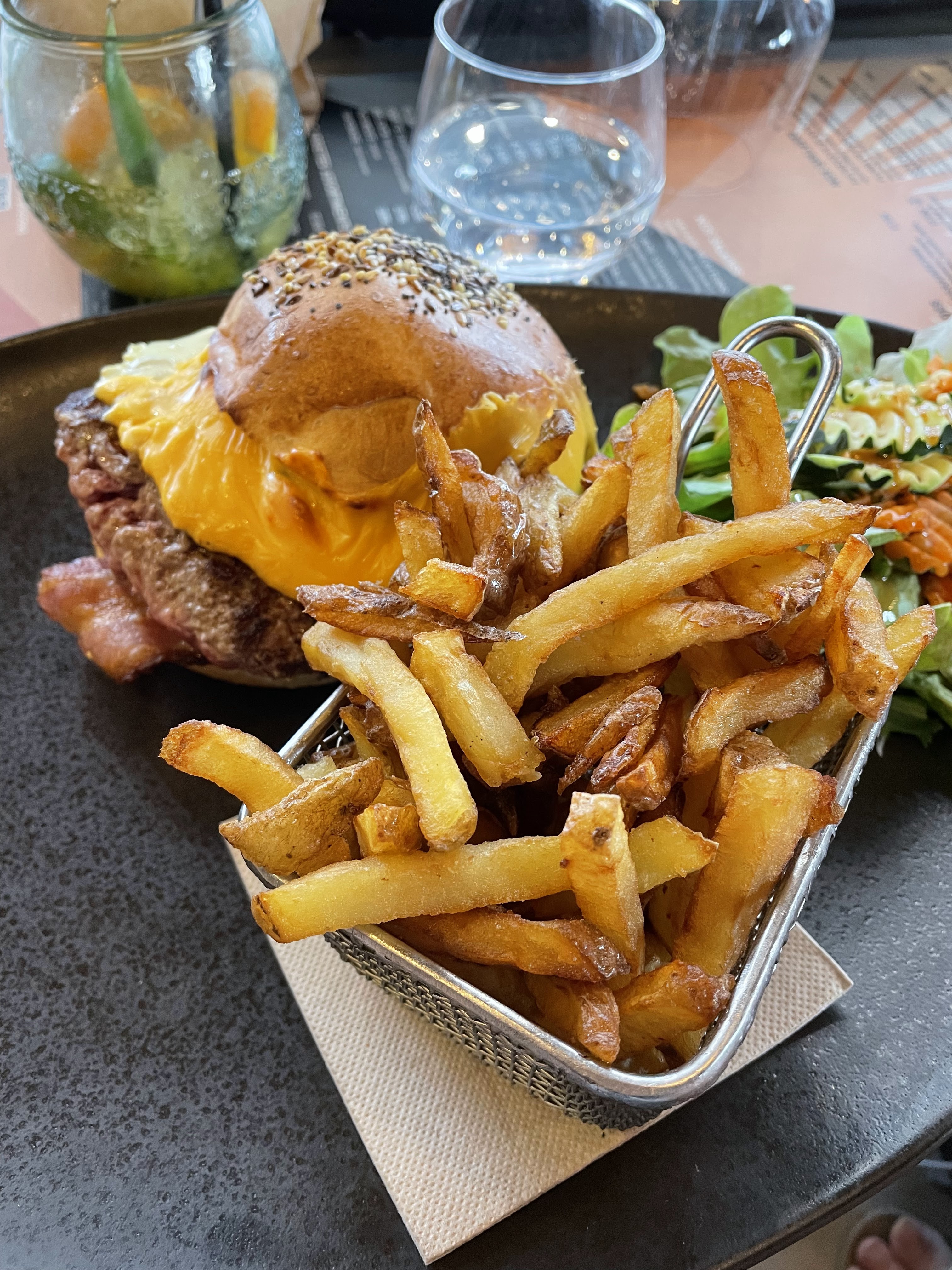 Miam ! Ce lieux est si bien qu'on à décider d'y retourner deux fois en 3jours, pendant nos petites vacances. L'accueil au top du top ! Une carte plutôt sympas et assez diversifié. L'ambiance est si chaleureuse, moderne et lumineuse 🥰 Prix très abordable pour un pétage de bide garantis ! Ps : Regardez bien le double Burger avant de le prendre.. Il est ENOOOORME. 🤣