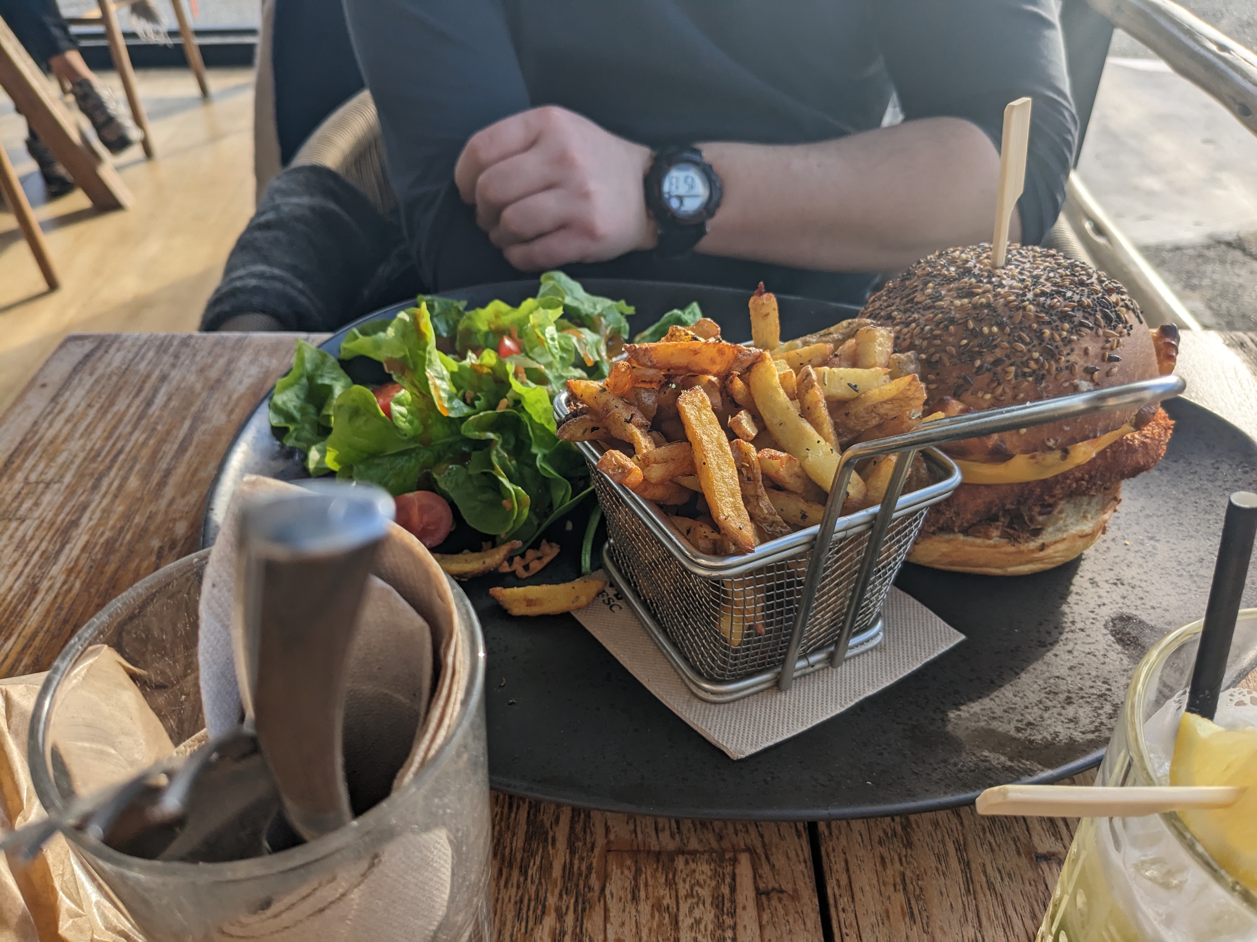 Super restaurant ! Hamburger délicieux et copieux 😋 avec une superbe vue directe sur le port 👌