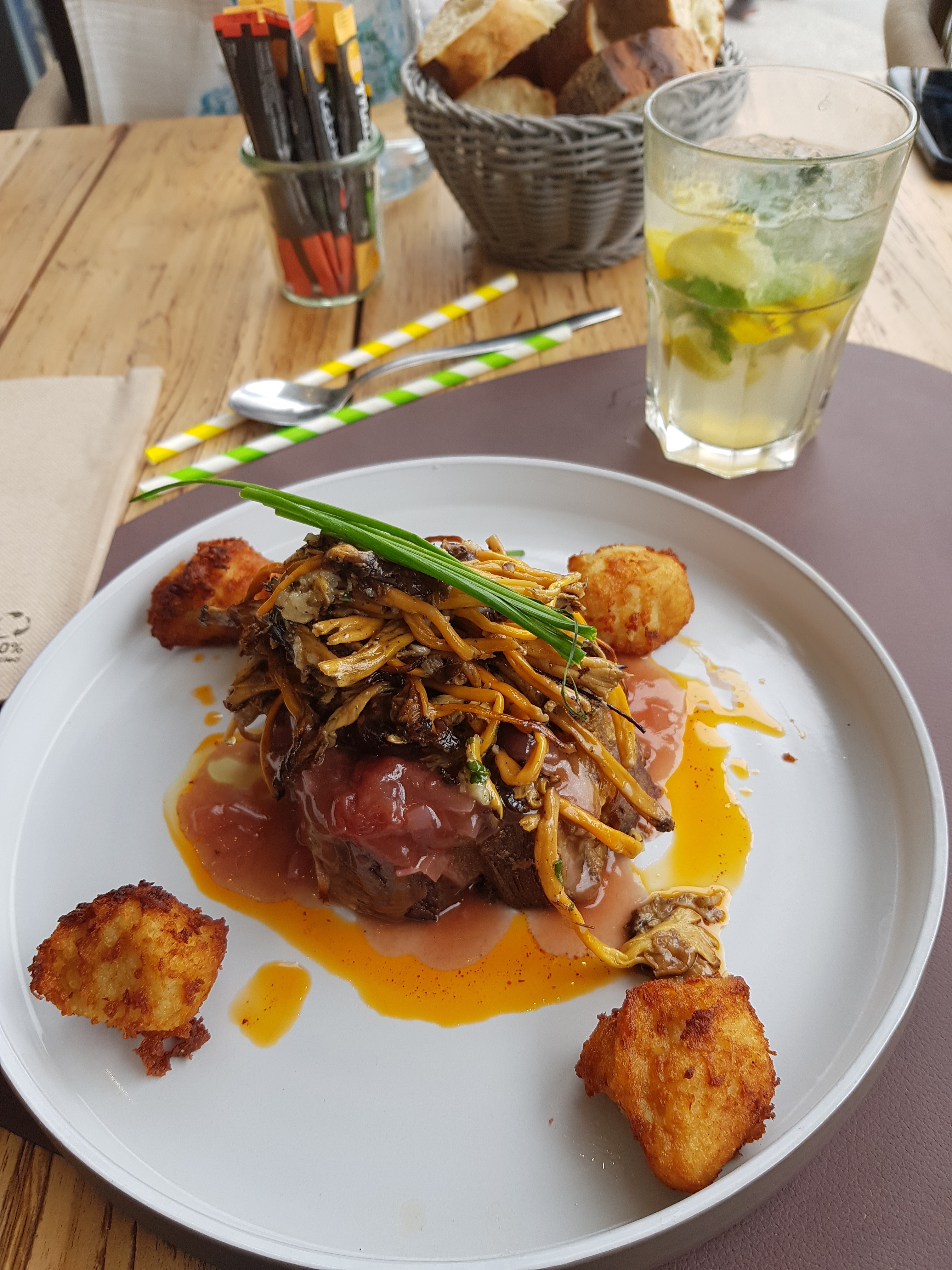 A part le cadre et sa localisation, service sympathique et agréable. Mais le thon aux agrumes n était pas frais ( il etait poisseux), mon hamburger au canard la viande était complètement destructurée.