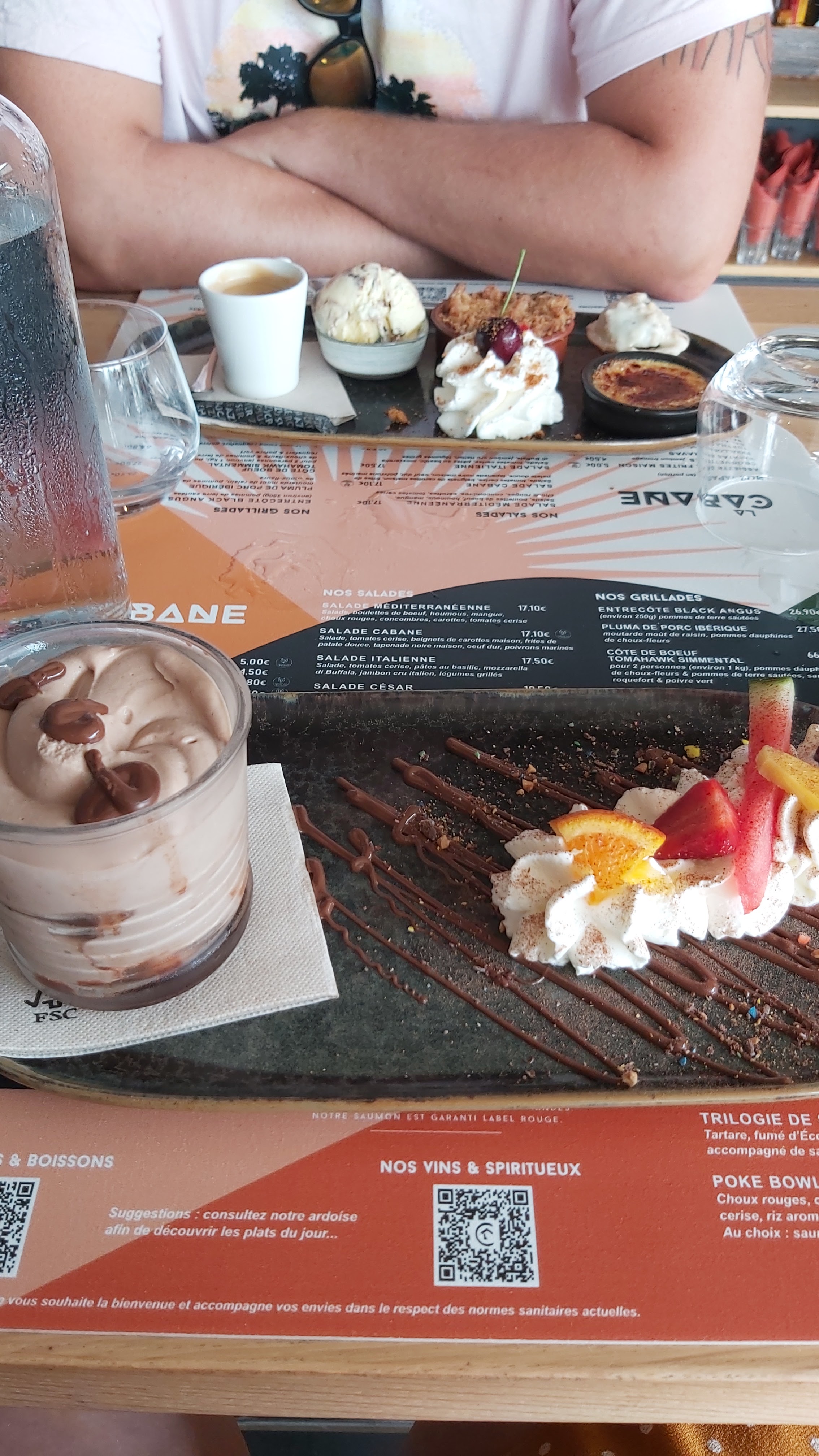 Accueil très chaleureux on a super bien mangé malgré ces restrictions dû au covid finir de manger avant 23 h .Je tire mon chapeau à toute l'équipe de La Cabane pour leur rapidité