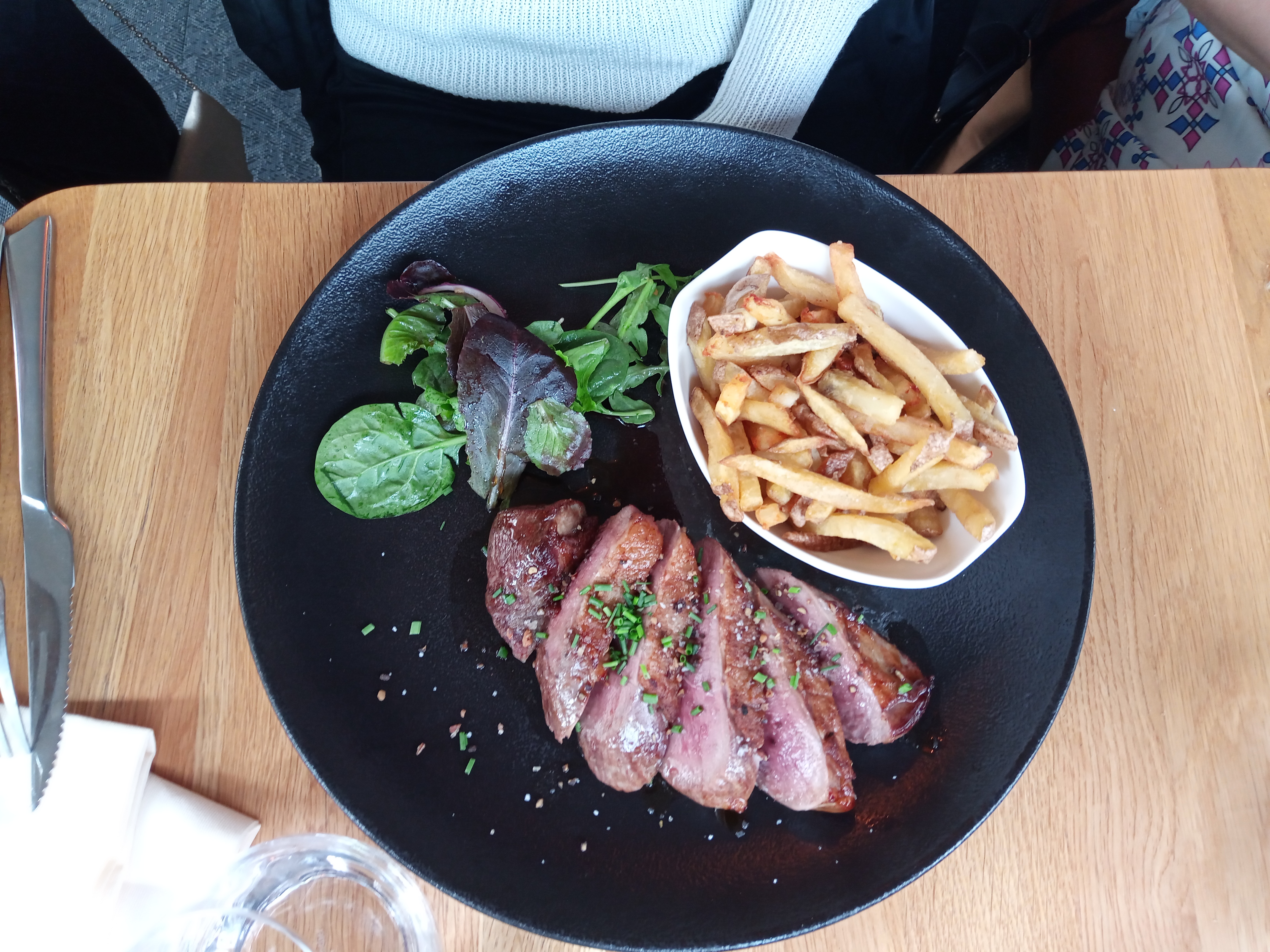 Mon kir royale trop sucré alors que j'avais demandé le contraire, avions demandé de prendre l'apéro tranquillement et avoir l'entrée après nous avons tout eu en même temps, obligé de demander la carte des vins pour le plat principal, avec l'apéro pas d'amuse bouche,les couverts ne sont pas changé, obligé de demander un couteau à viande,car les couteaux ne coupaient pas,les employés très sympa, la nourriture très bonne, nous n'y retournerons pas