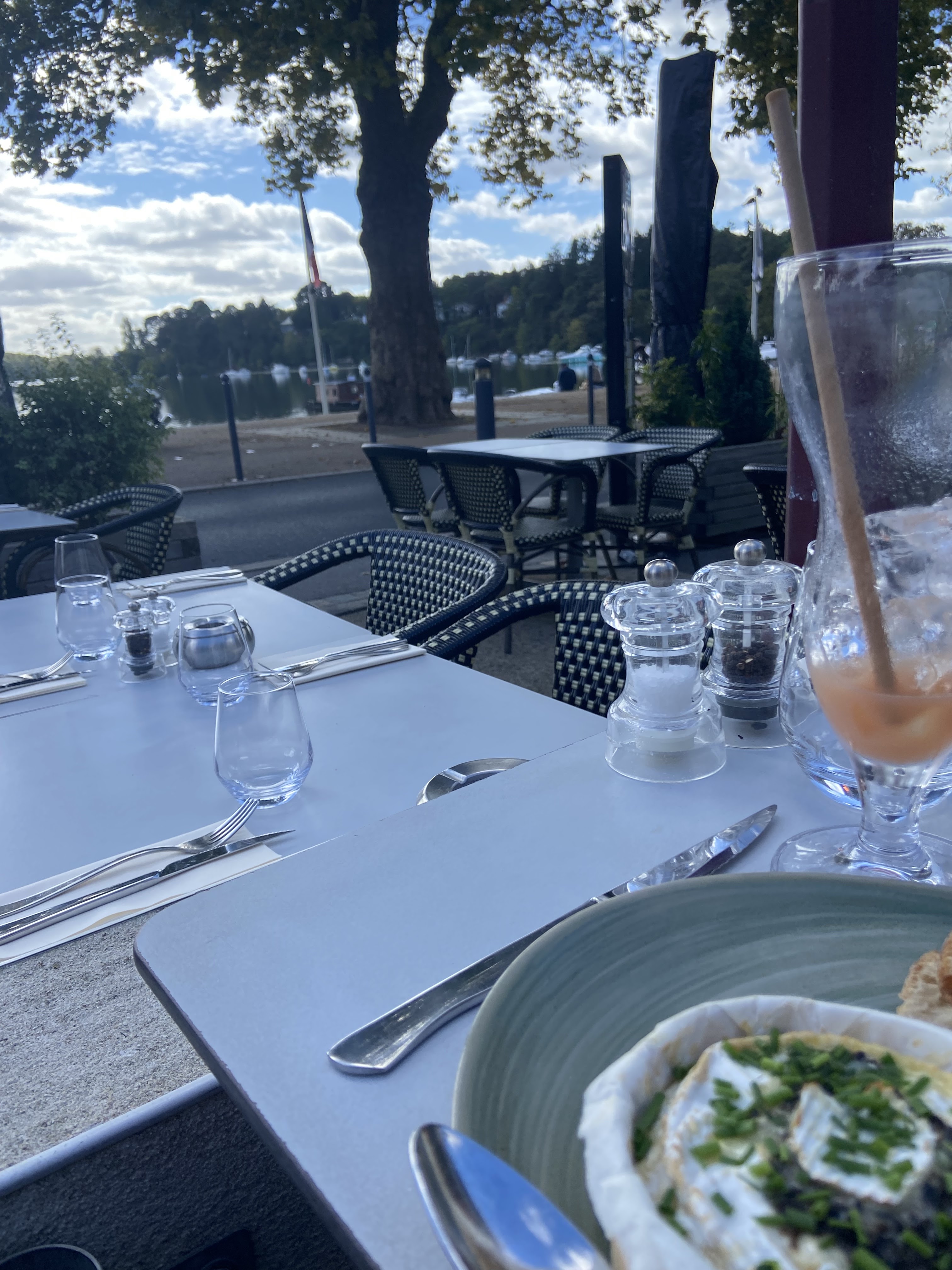 Aucun autre établissement ouvert sur les bords de l Erdre donc on pense avoir un endroit sympa puisque c est le seul en ce début de chaleur... personnel très agréable, le problème n est pas là mais les tables ne sont pas nettoyées entre les clients donc pas propres, pas de citron pressé, pas de glaces... Uniquement des crêpes ! Super avec le temps chaud! Endroit extrêmement gênant et bruyant et vraiment pas à la mode!!! Non, vraiment on ne reviendra pas.