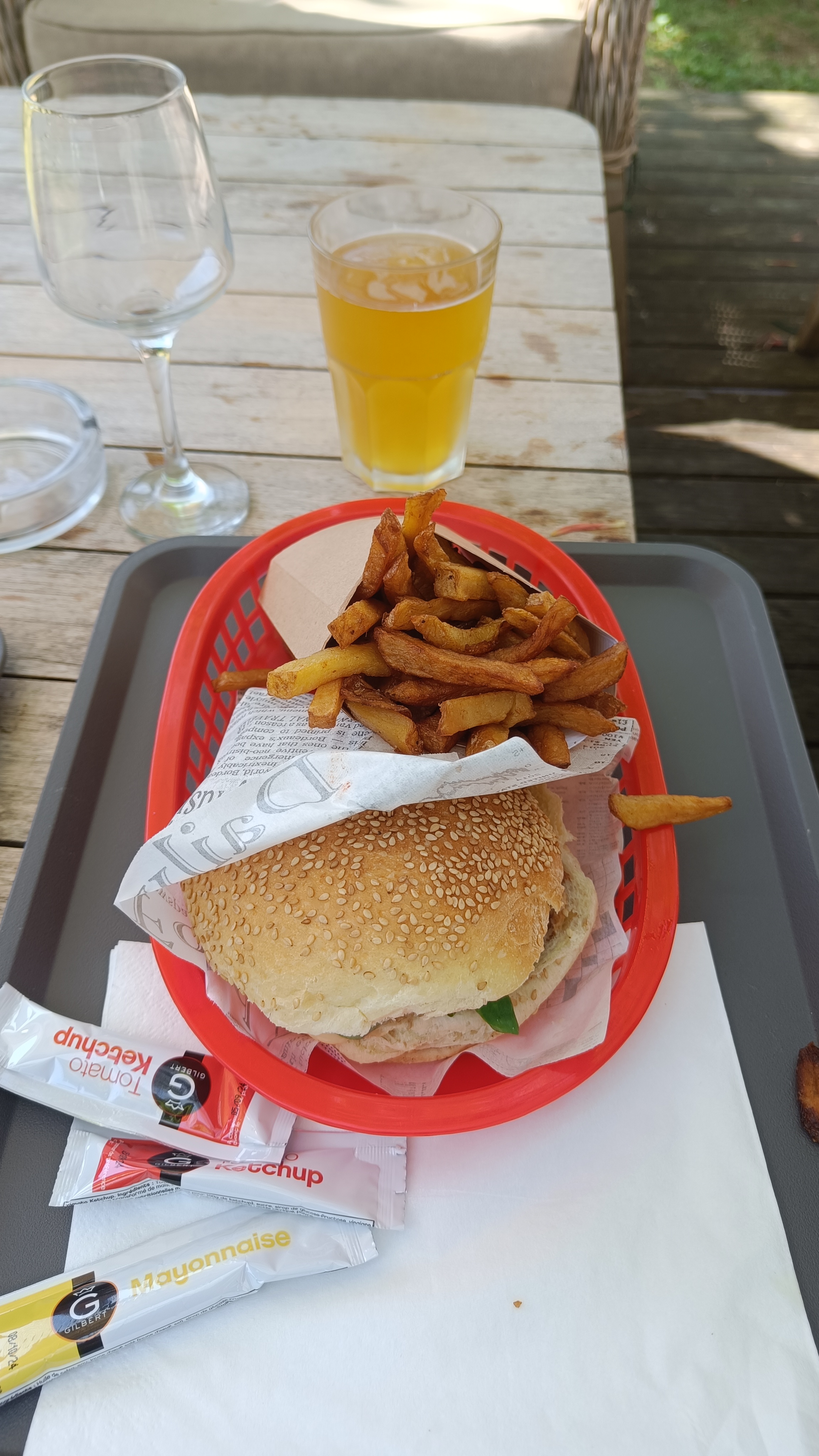 Accueil sympathique, terrasse bien aménagée et conviviale. J'ai pris un burger chicken avec frites et je me suis régalé. Le poulet est à la fois croustillant et fondant. Je recommande vivement !