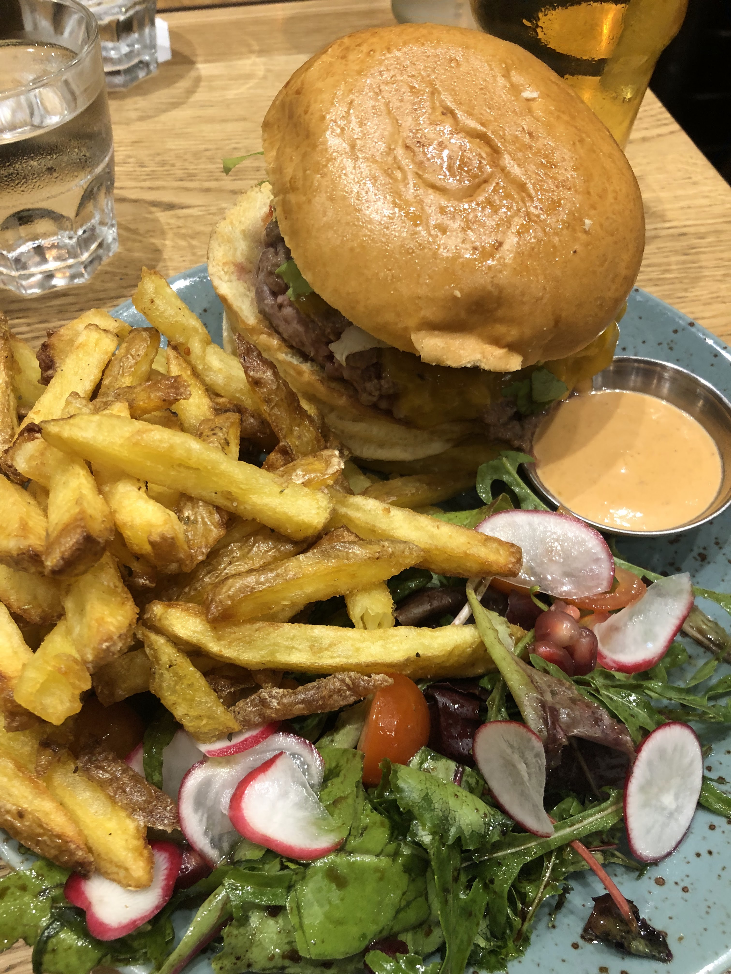 Très bon burger et cadre très agréable mais déçue pour le dessert, la brioche perdue n'était pas assez cuite et le caramel brûlé :/