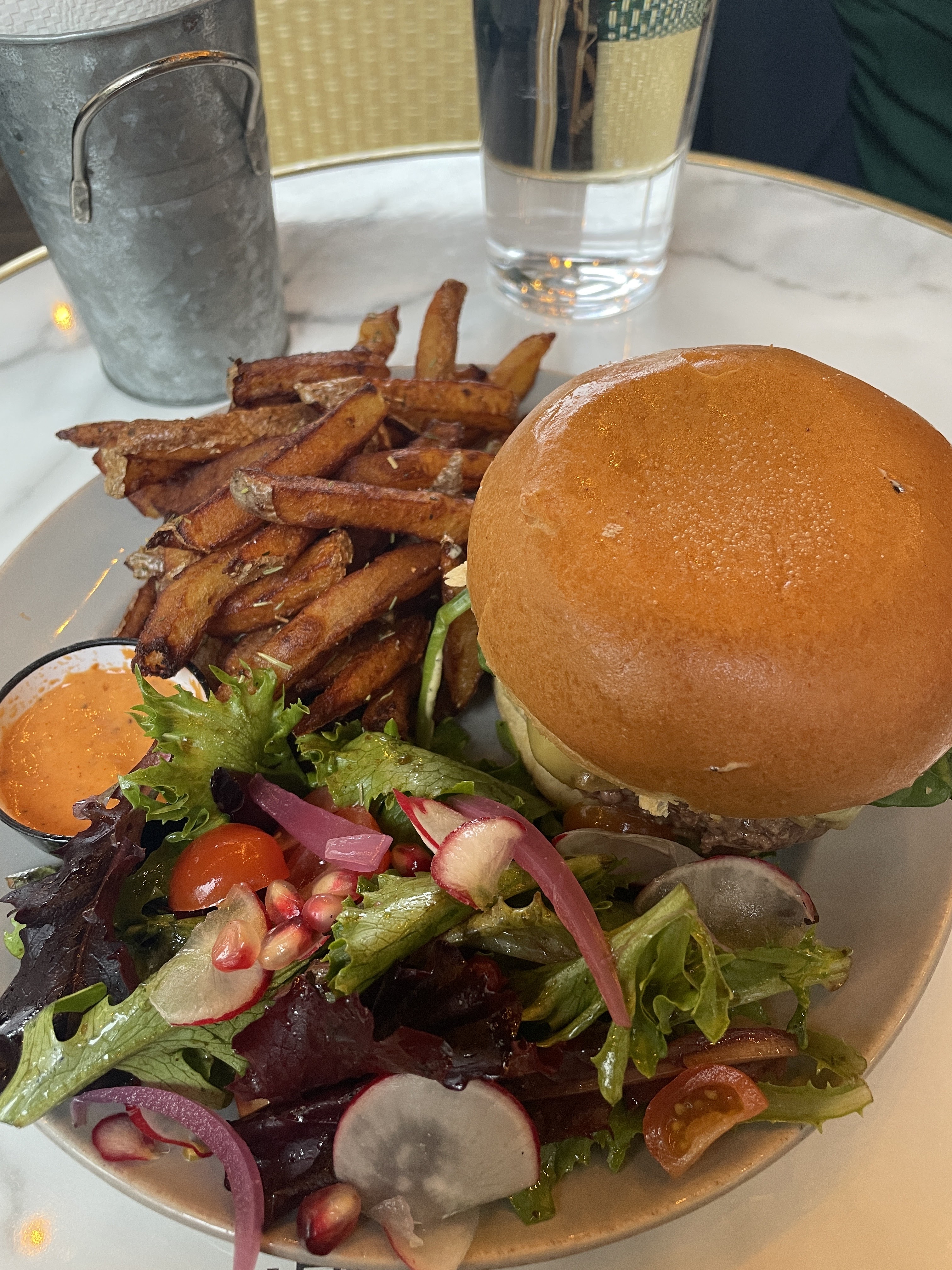 J’ai commandé un Burger avec des frites, c’était tellement bon !!! En plus on a été super bien servi par Léa, qui était aux petits soins et hyper souriante :). Bref, allez-y, et gardez de la place pour un dessert, eux aussi ils sont trop bons !!