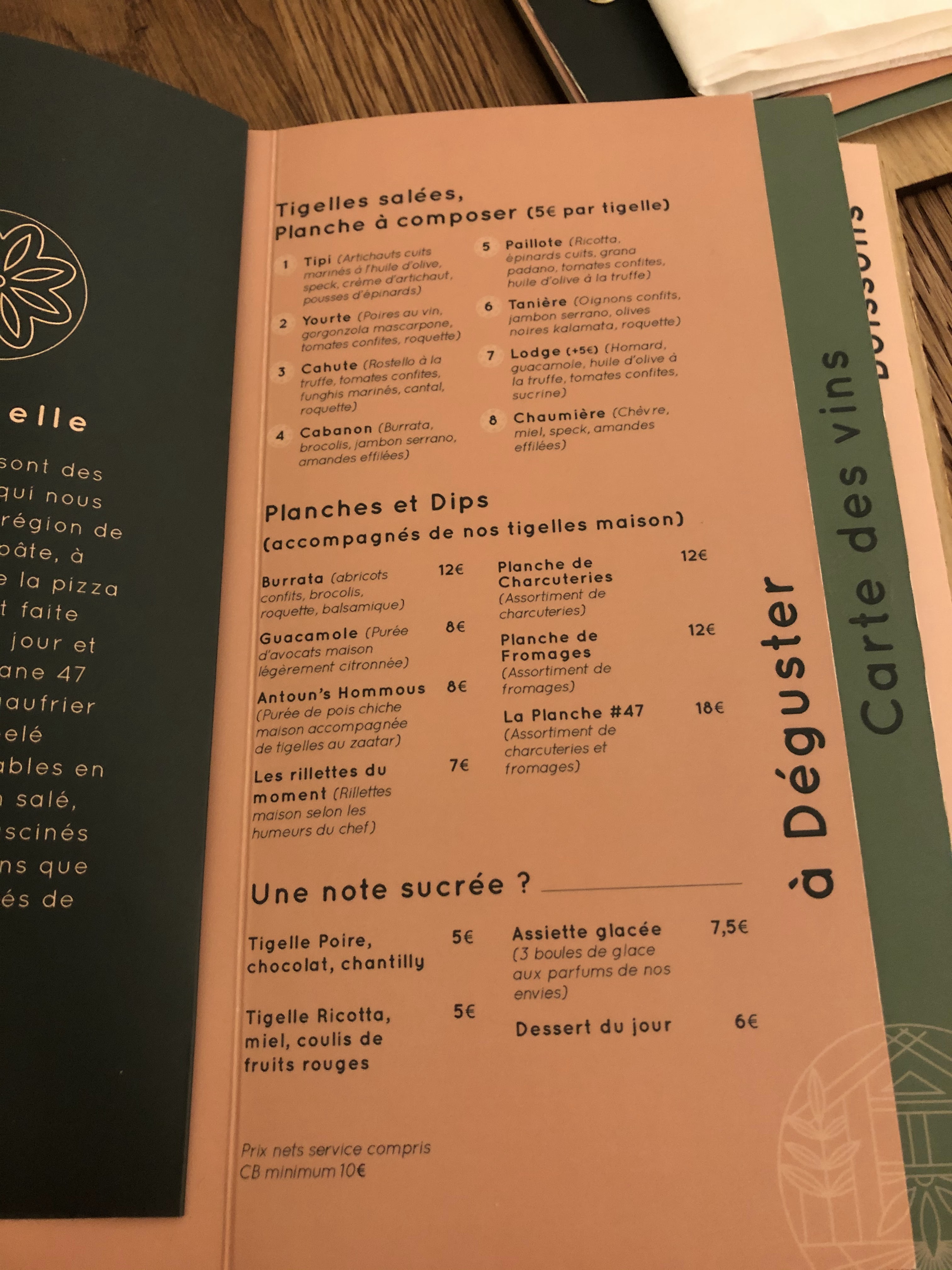 Super soirée ! Des 18h, une équipe accueillante sert des planches plus généreuses que la moyenne à Paris. Les burgers sont fous ! Et les cocktails très originaux !