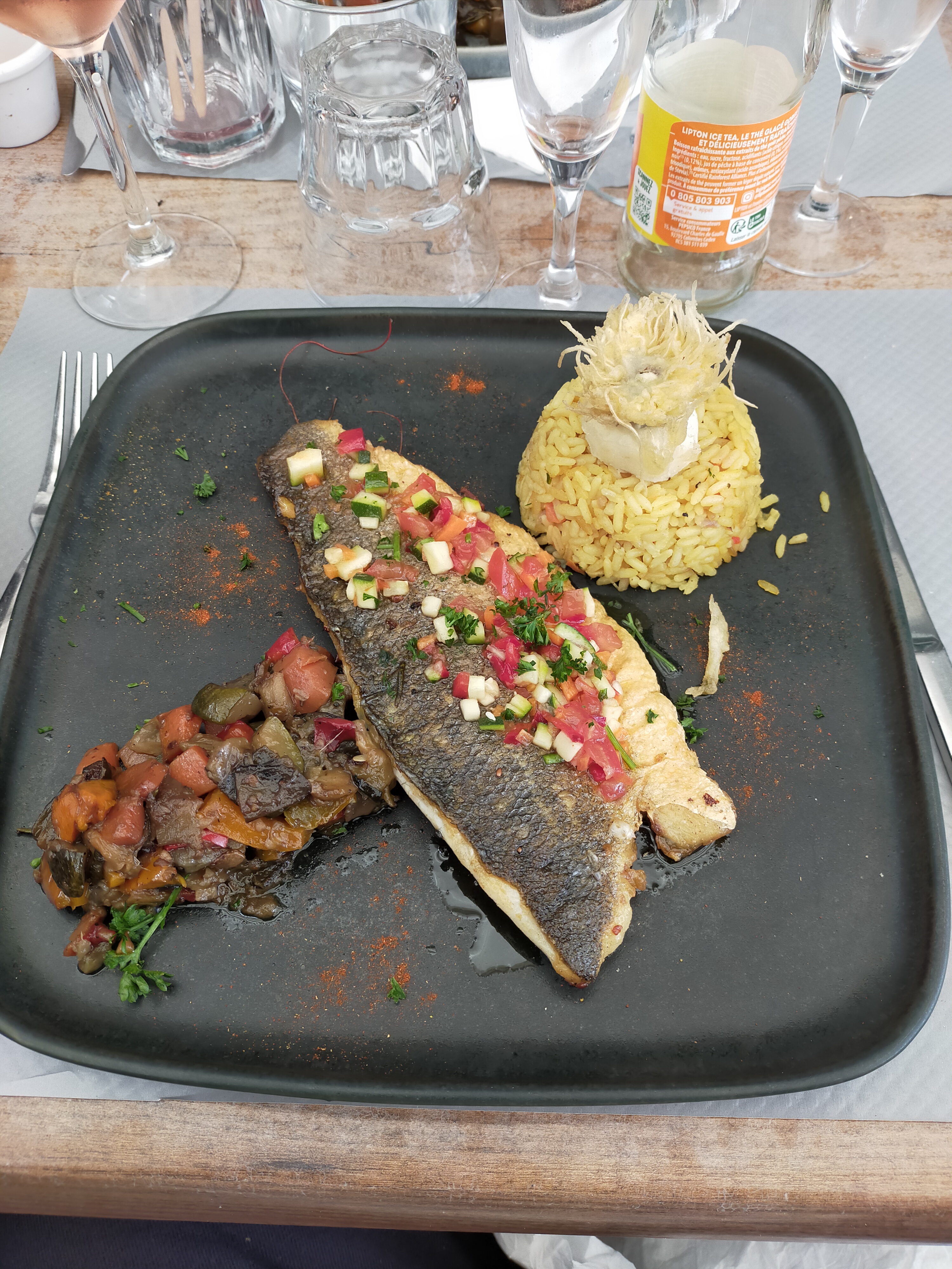Un repas délicieux, saumon gravelax un délice vraiment le meilleur que nous avons mangé, le filet de bar était parfait et les moules également. Personnel super agréable. Et surtout le prix vraiment très abordable par rapport à certain restaurant de l'île qui sont extrêmement cher pour leurs produits médiocre. Allez y les yeux fermés.