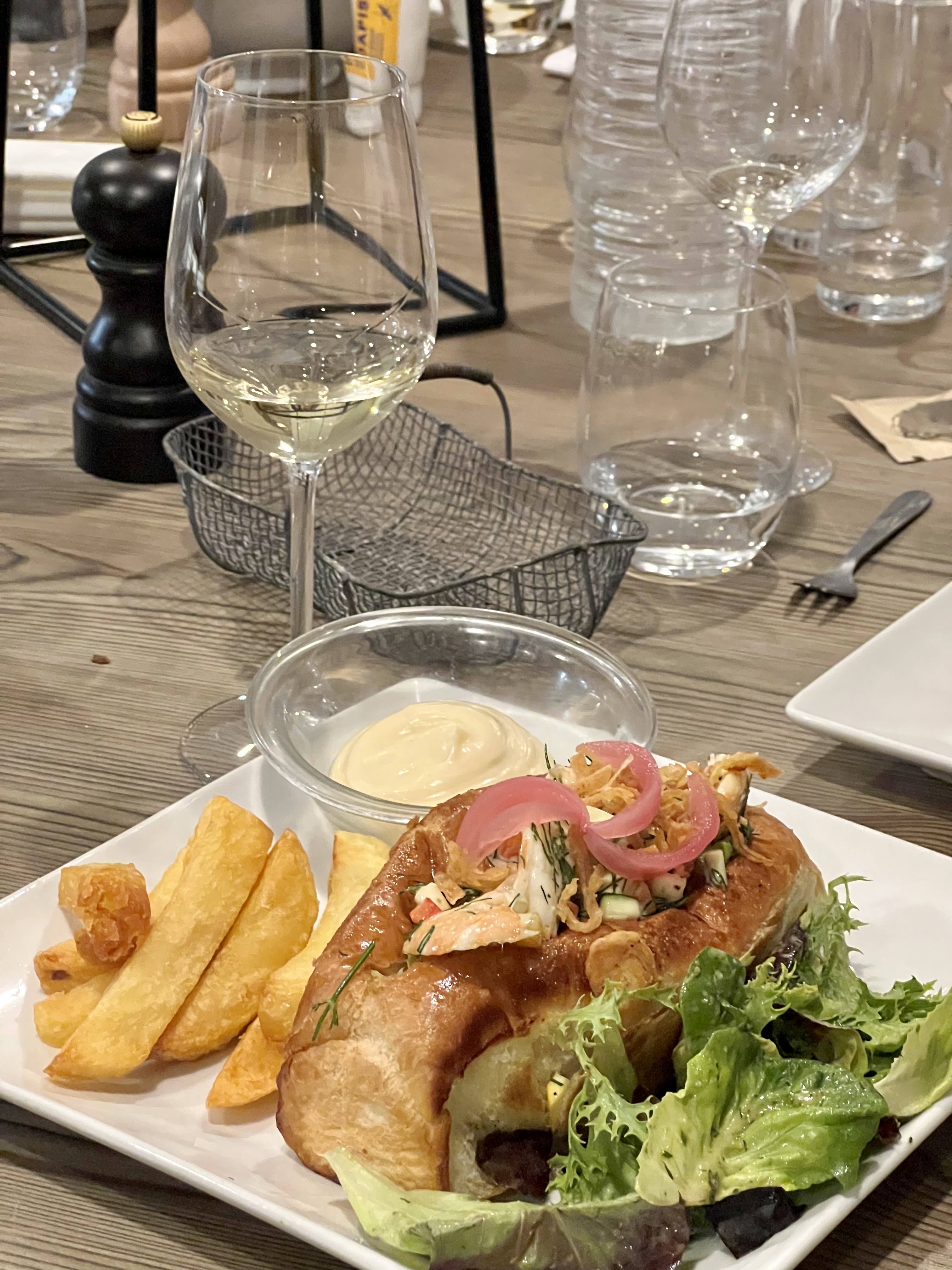 Nous sommes venus dans ce restaurant pour célébrer nos collègues de Singapour qui sont sur le point de rentrer chez eux. Même si c'est la première fois que nous dînons ici, je suis sûr que nous reviendrons ! Le savoureux rouleau de crevettes et les huîtres sont délicieux ! Tellement incroyable. Chaque employé du magasin est très professionnel, heureux et offre un excellent service. Merci Stéphane Hall, votre équipe est géniale. Merci au chef aussi ! Vos repas étaient vraiment délicieux et inoubliables. L'alcool a vraiment bon goût. -- Homard au homard / 28.00€ Mayonnaise miso, oignons croustillants, accompagné de ses frites maison -- Huitres spéciales d'isigny n°2 6pc / 18.00€ Maison Taillepied -- Huitres gratinées - Servi par 4 /14.00€ Fines N°2 - Maison peponnet, sabayon de champagne, salade fraîcheur