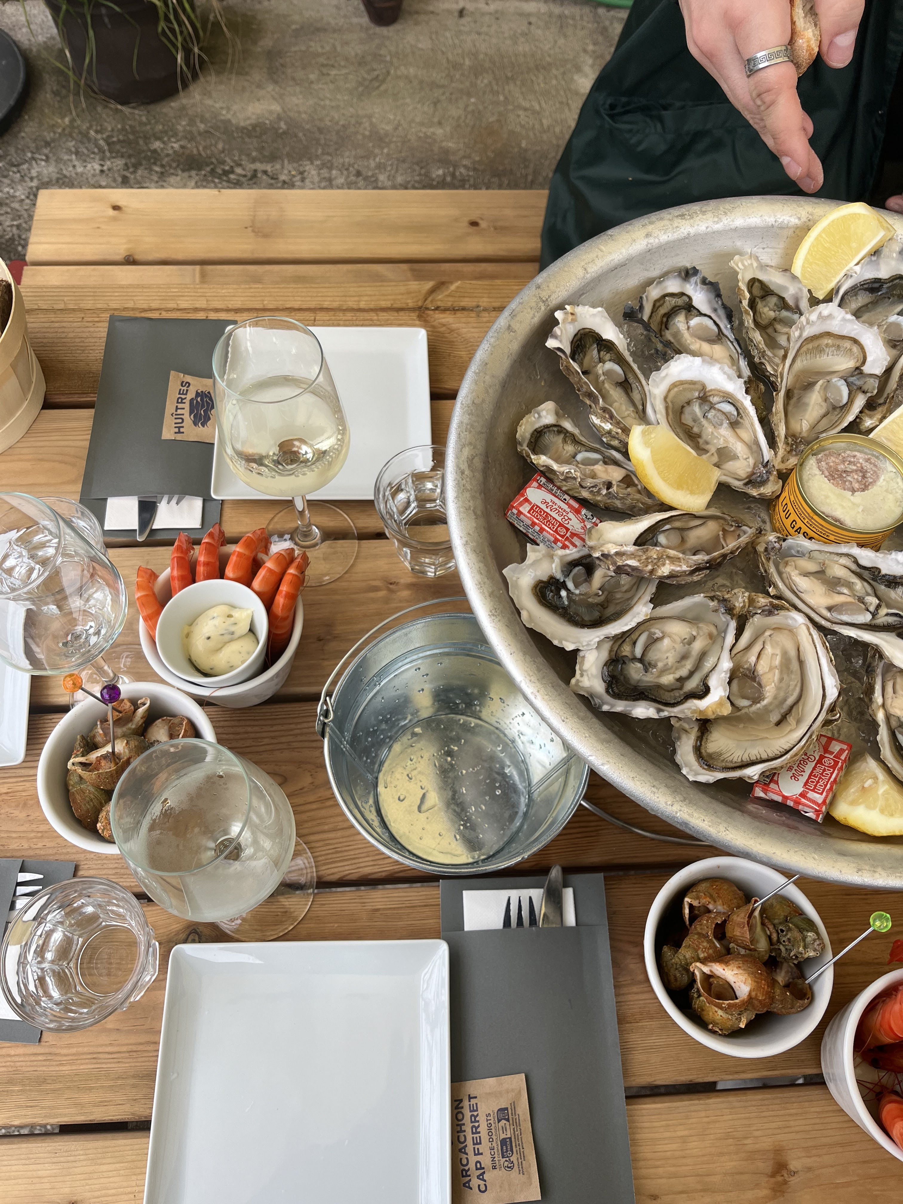 La plus belle vue sur le bassin depuis la côte sud. On est loin des rattrape couillons de Larros 🤣 Authenticité calme et volupté. Très bons produits directement du producteur. Tarifs raisonnables.