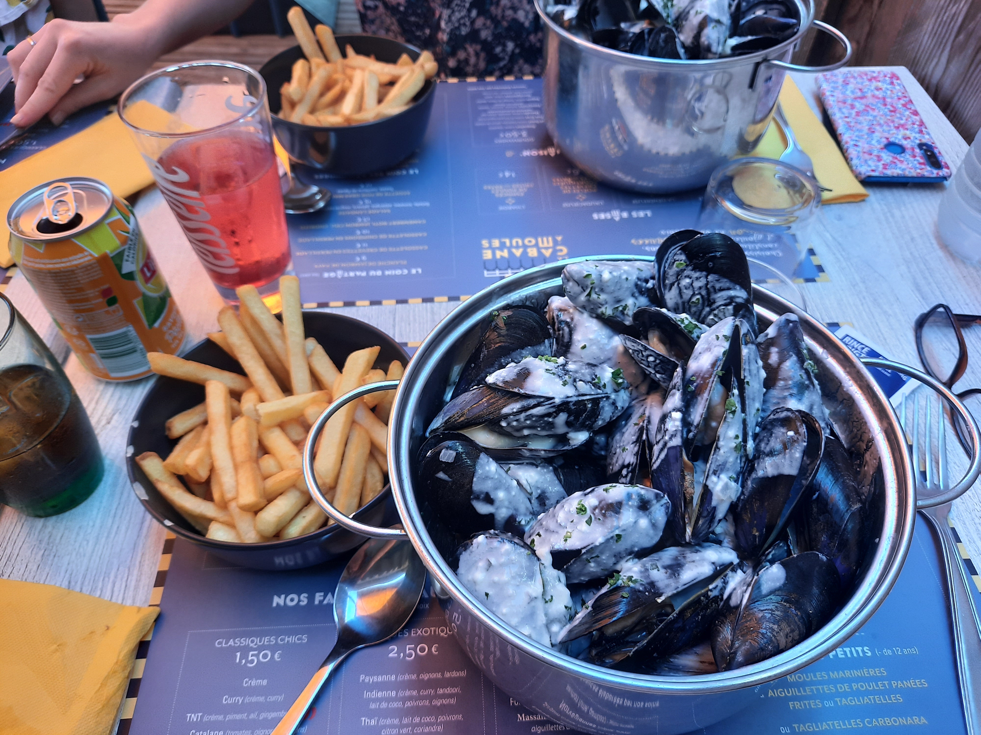 On mange à la Cabane à Moules alors on s’attend à quelque chose de spécial. Pas mal de moules vides, certaines trop cuites d’autres pas assez, frites style mcdo. Moules marinières pour ma part, mais l’ail et le persil avec trop peu de goût. Dans l’ensemble ça reste bon, rien d’exceptionnel non plus.