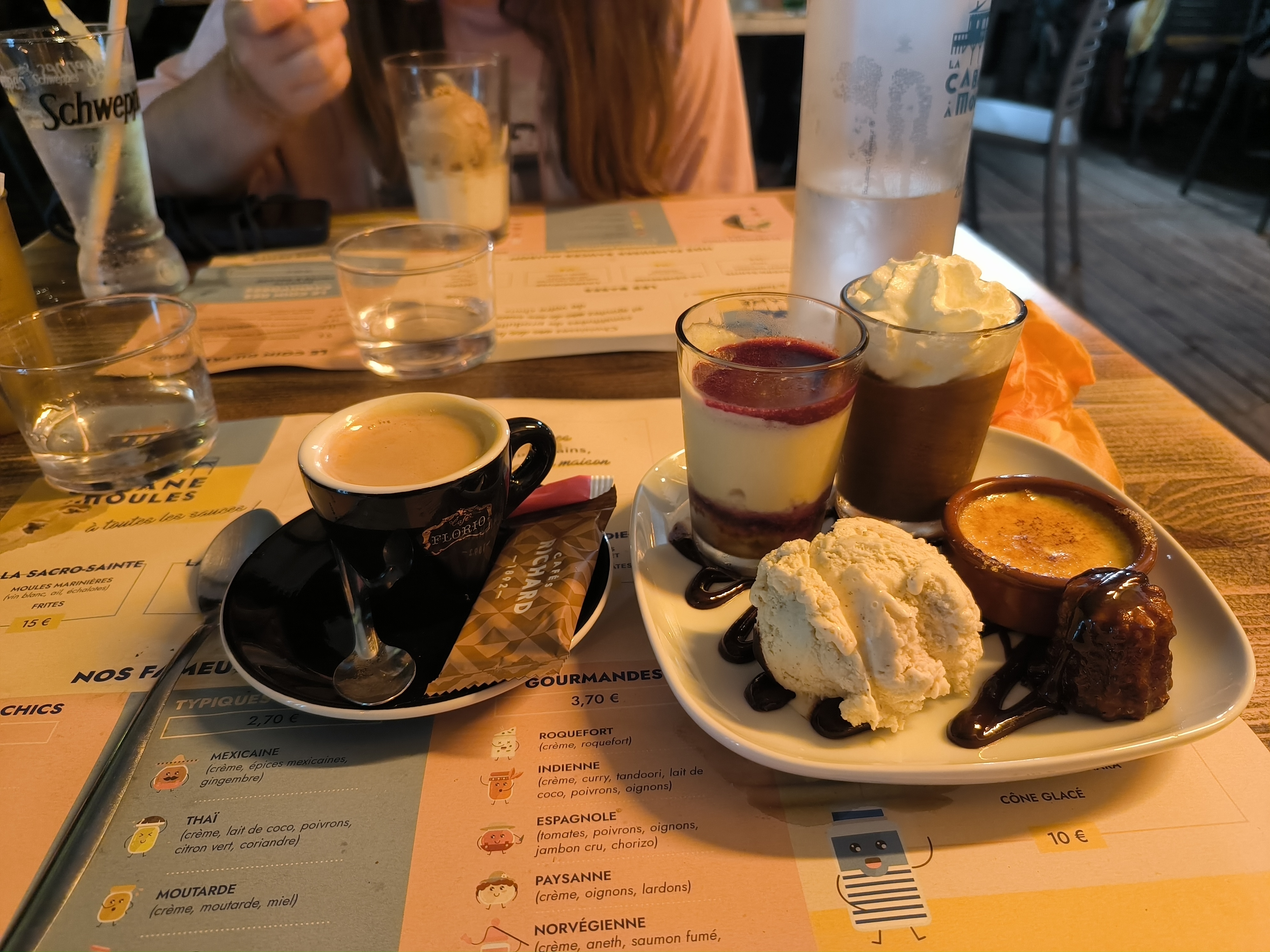 Super restaurant, les moules frites sont excellentes, la poêlée de crevettes également, et ma fille a eu une mousse au chocolat à la place de la glace ds le menu enfant cr elle n'aime pas trop les glaces, et la serveuse est au petit soin... Très bon moment en famille 😊