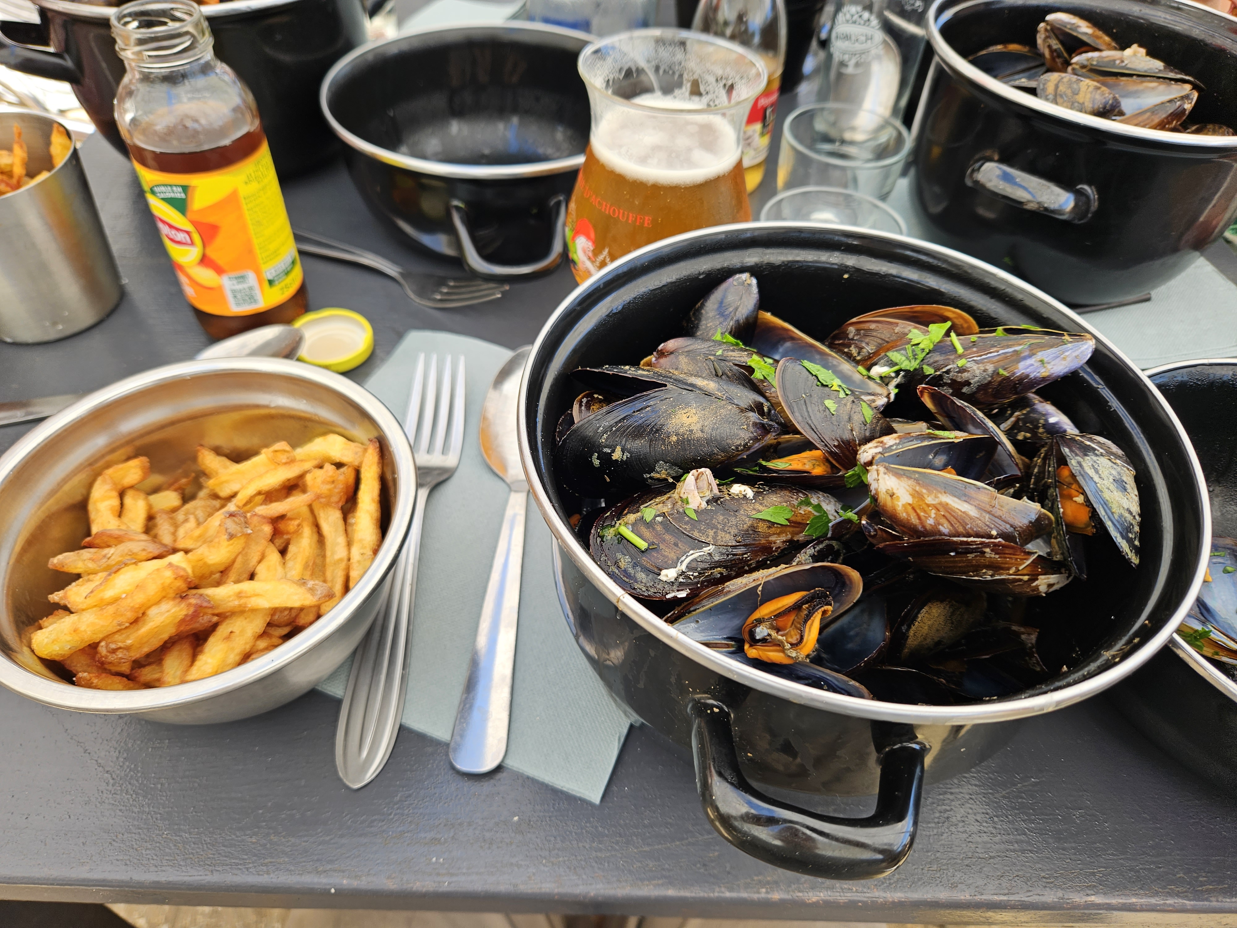 Nous avions un apriori quant à l’affluence très touristique de ce restaurant : nous avons bien fait de suivre les bons avis et d’y réserver ! Les moules étaient fraîches et bonnes. Ne parlons pas des frites maison que nous avons englouties ainsi que notre fils ! Nous le conseillons vivement !