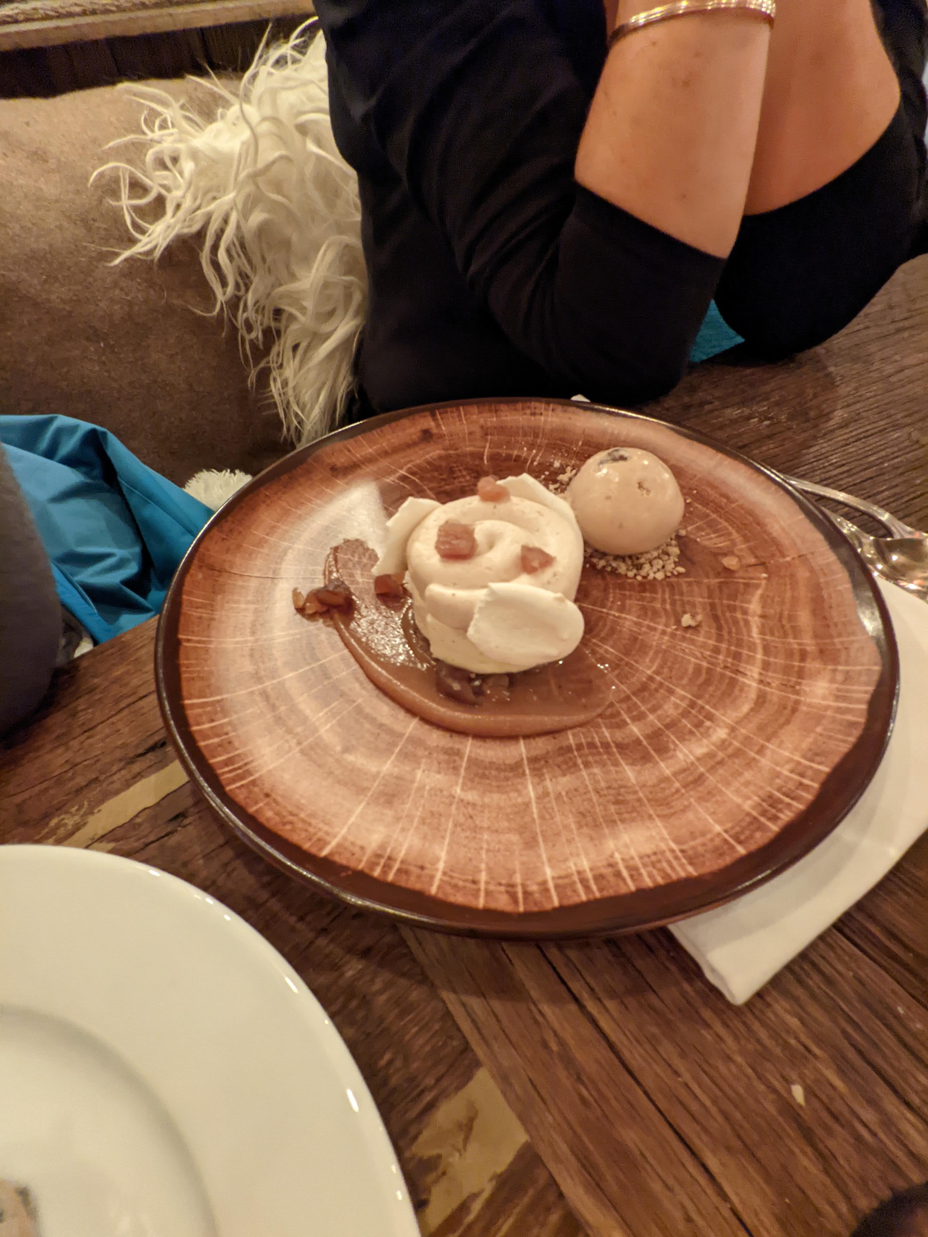 Le restaurant vendait du rêve. Ambiance cosy, feu de cheminée. On en attendait beaucoup. Bien accueillis, serveuse très sympathique et service rapide. La présence d'un chanteur en live était très agréable. Le dessert était à tomber. Mais gros bémol concernant les plats. Nous avons été déçus de la tartiflette et la salade l'accompagnant était bien trop croquante sous les dents.