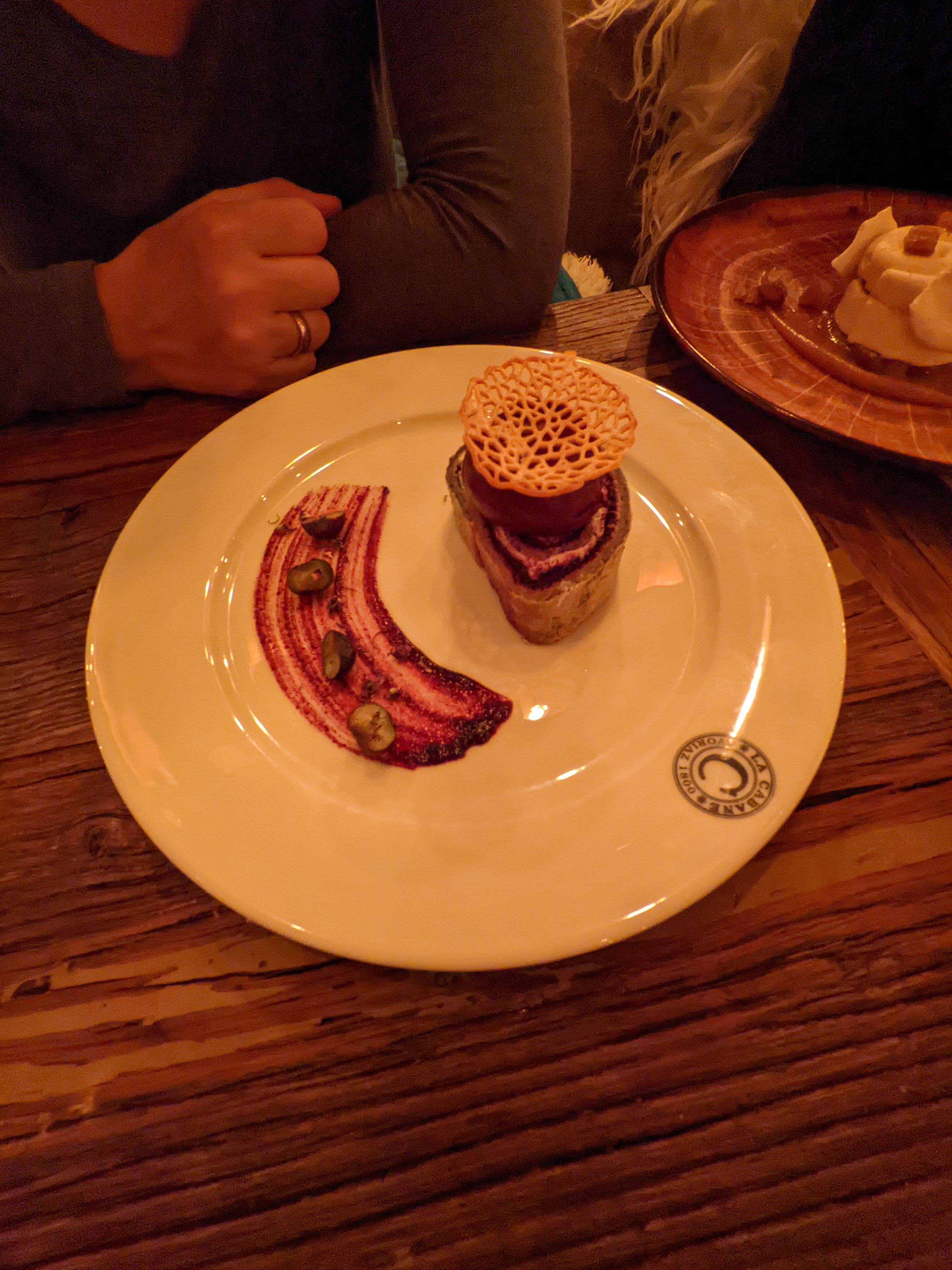 Adieu le Bistro, bonjour la Cabane, le nouveau nom du restaurant qui a fait de gros travaux cette année, et le résultat est magnifique. Le bar à l'étage est superbe. La carte n'a pas changé (selon ma mémoire) et propose toujours des plats aussi goûtus : du classique local (fondue, mont d'or), du classique classique (pot au feu, suprême de volaille), et même des sushis pour ceux qui en ont assez du fromage fondu 😉 Service très attentionné.