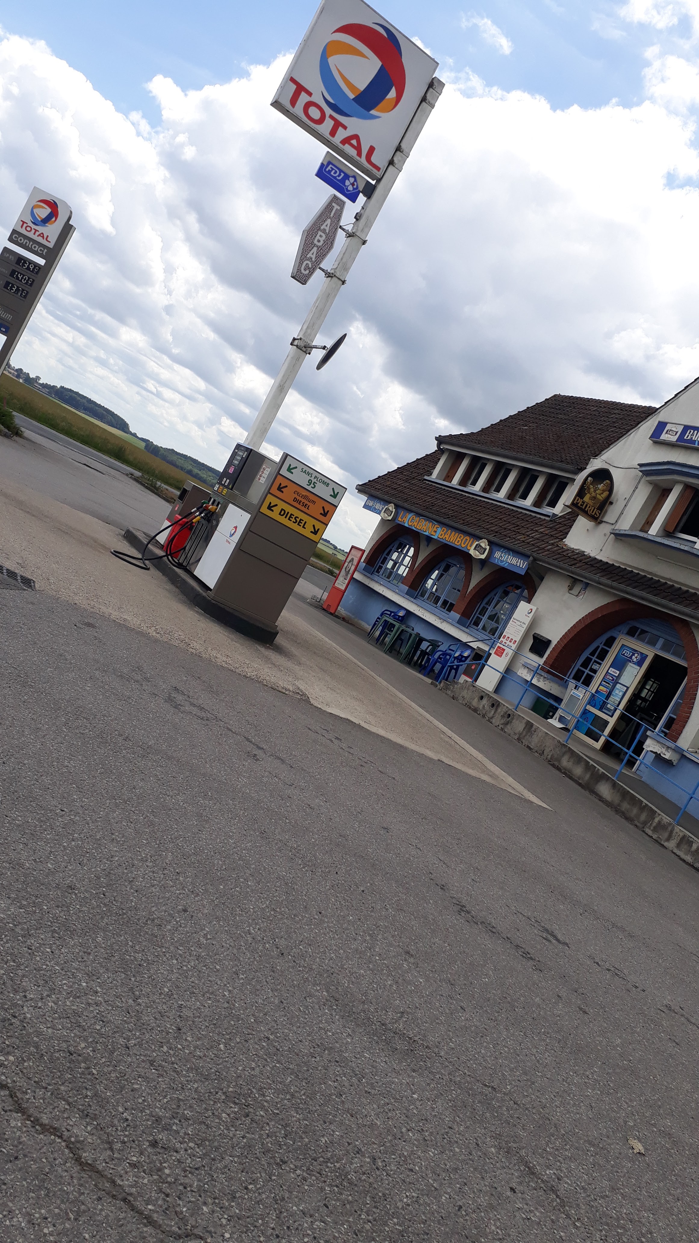 Station service TOTAL de campagne avec un bar tabac et un restaurant. Nous nous y sommes arrêtés un dimanche midi pour déjeuner. Le rapport qualité prix est excellent avec des plats faits maison (souris d'agneau délicieuse...). Le personnel efficace et attentif. Les lieux sont propres et proposent les services des stations plus importantes WC, douche... Bref : une halte sympatique et pas chère