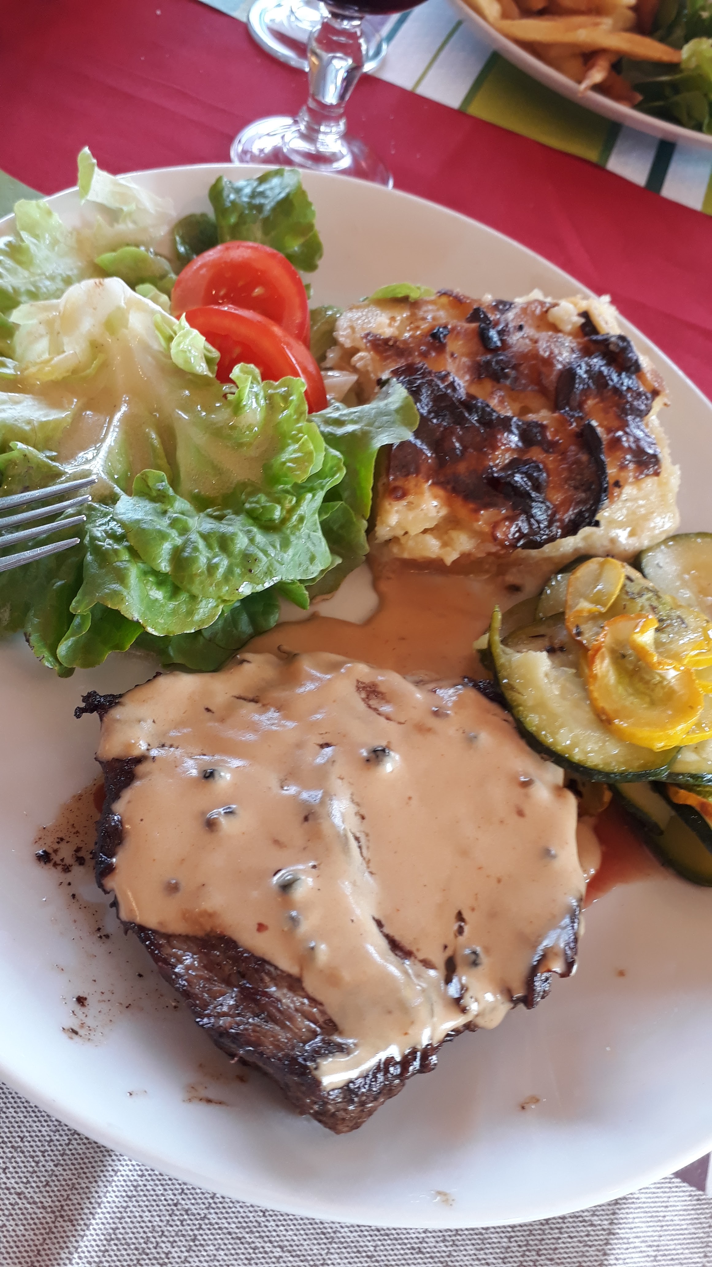 Repas simple ( pas de buffet d’entrée) large choix au niveau hors-d’œuvre et dans les plats , il y en a pour tous les goûts. J’y ai mangé deux fois de suite, c’était très bien. Sanitaire propre. Bon accueil. Ne pas arriver trop tard pour se garer 😉